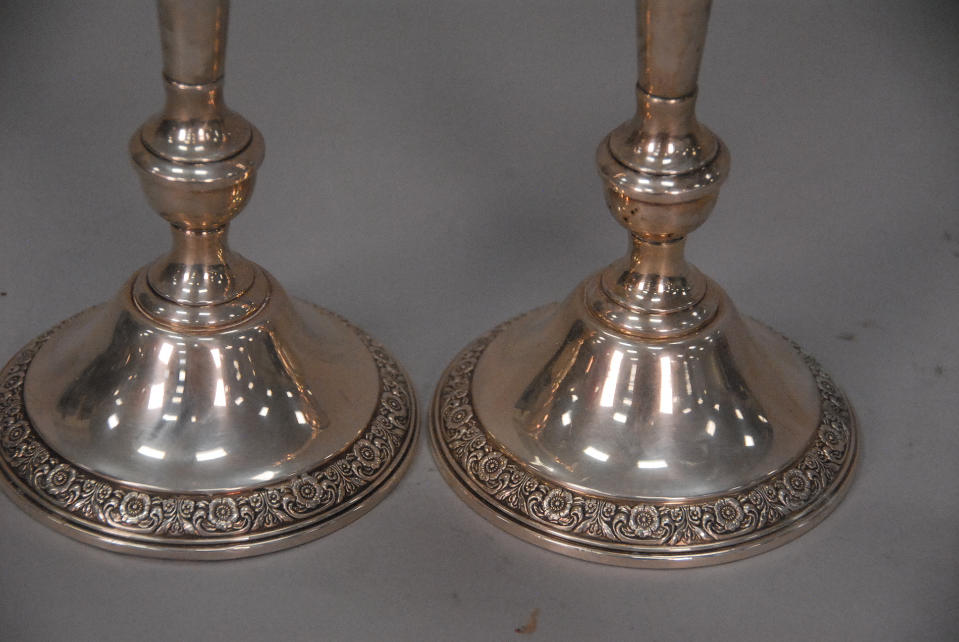Pair of sterling silver candlesticks Prelude by International, weighted. ht. 10 3/4in.