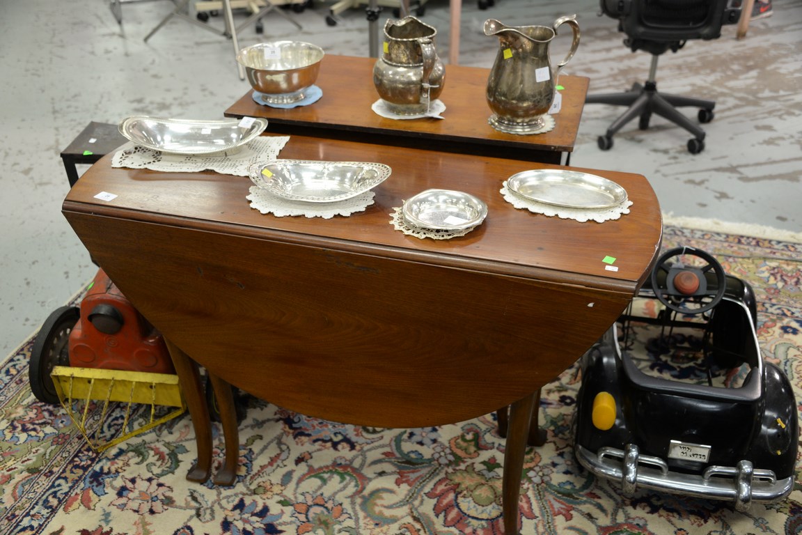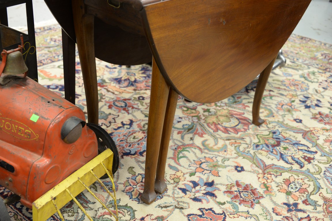 Queen Anne style drop leaf table with drawer. ht. 28 1/2 in. top: 44 x 49 1/2