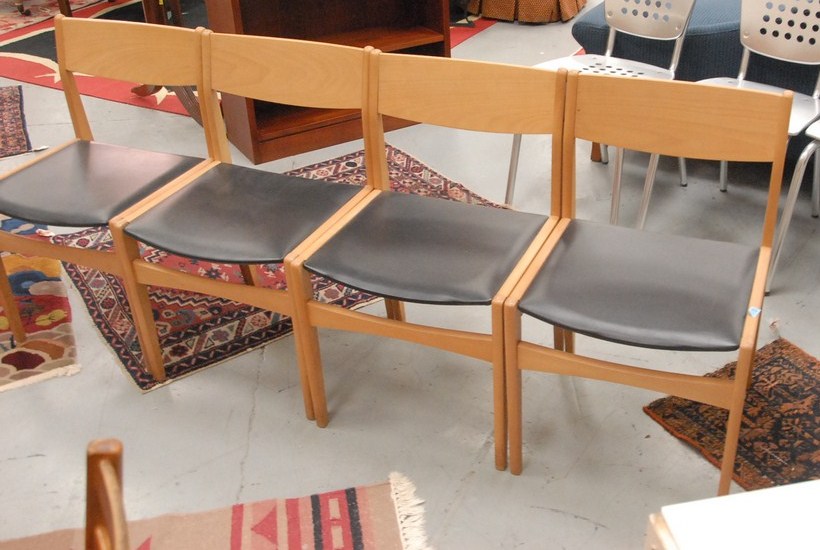 Set of four Danish chairs marked Frem Rojle Denmark.