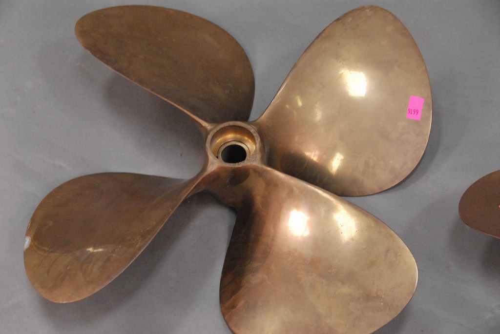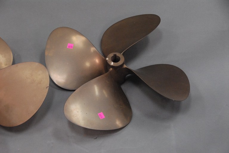 Three brass ship’s boat propellers.