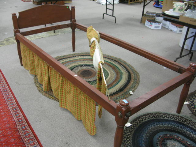 Three piece lot to include a pair of primitive twin size rope bed and a country tip table