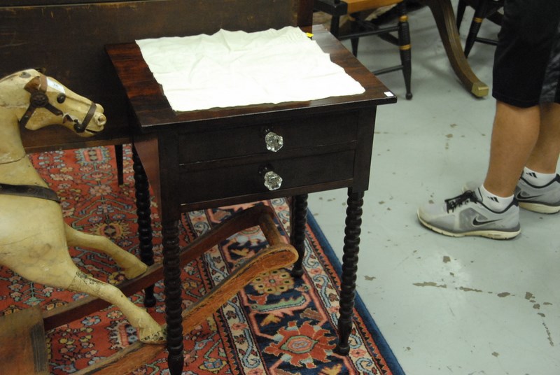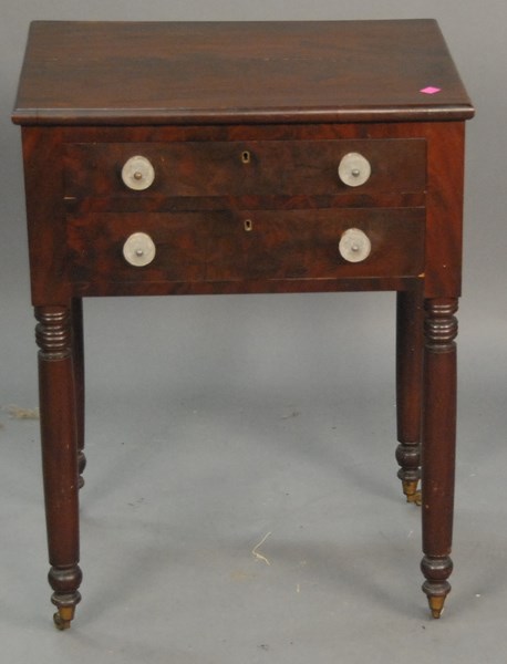Lot 28: Two stands, each with two drawers, early to mid 19th century, ht. 28in. top: 21 x 17 and 22 x 17