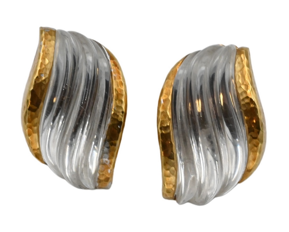 Lot 28: Webb Pair of 18 Karat Gold Earrings, having crystal inserts, 1 1/4 inches.