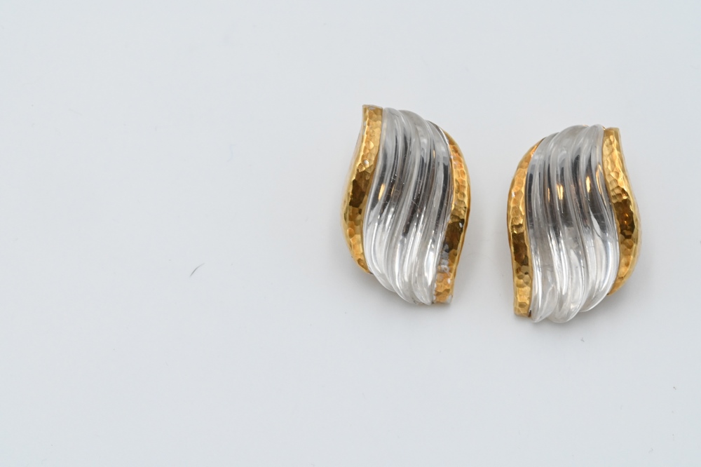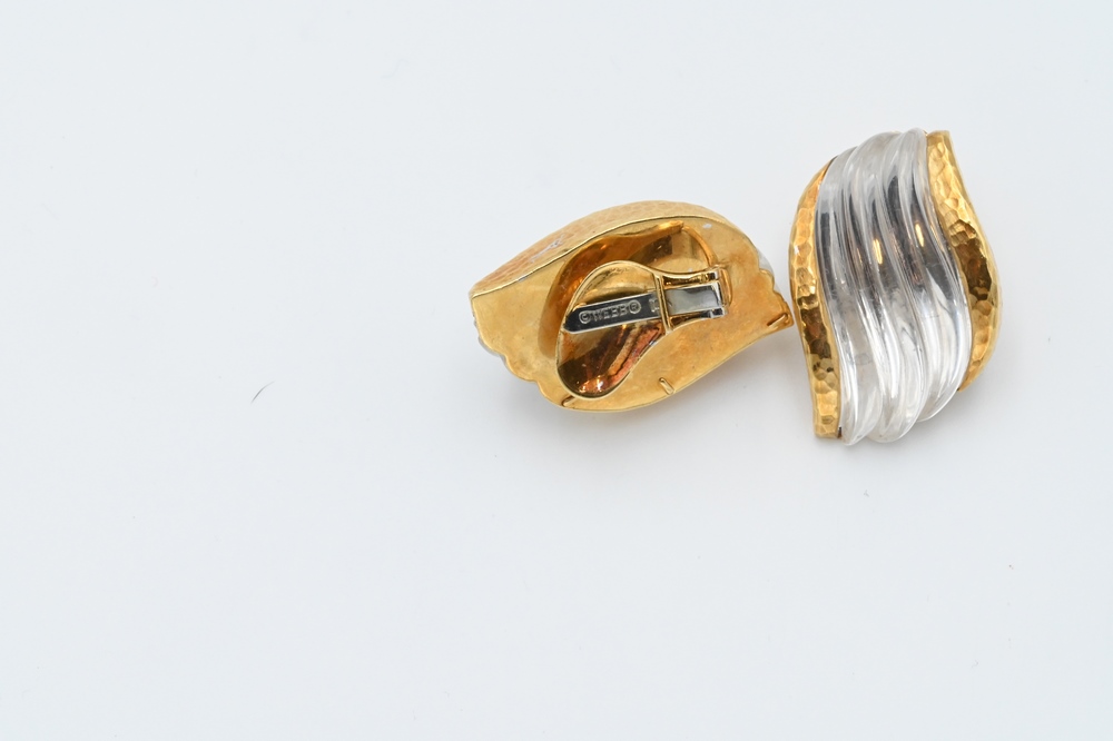 Lot 28: Webb Pair of 18 Karat Gold Earrings, having crystal inserts, 1 1/4 inches.