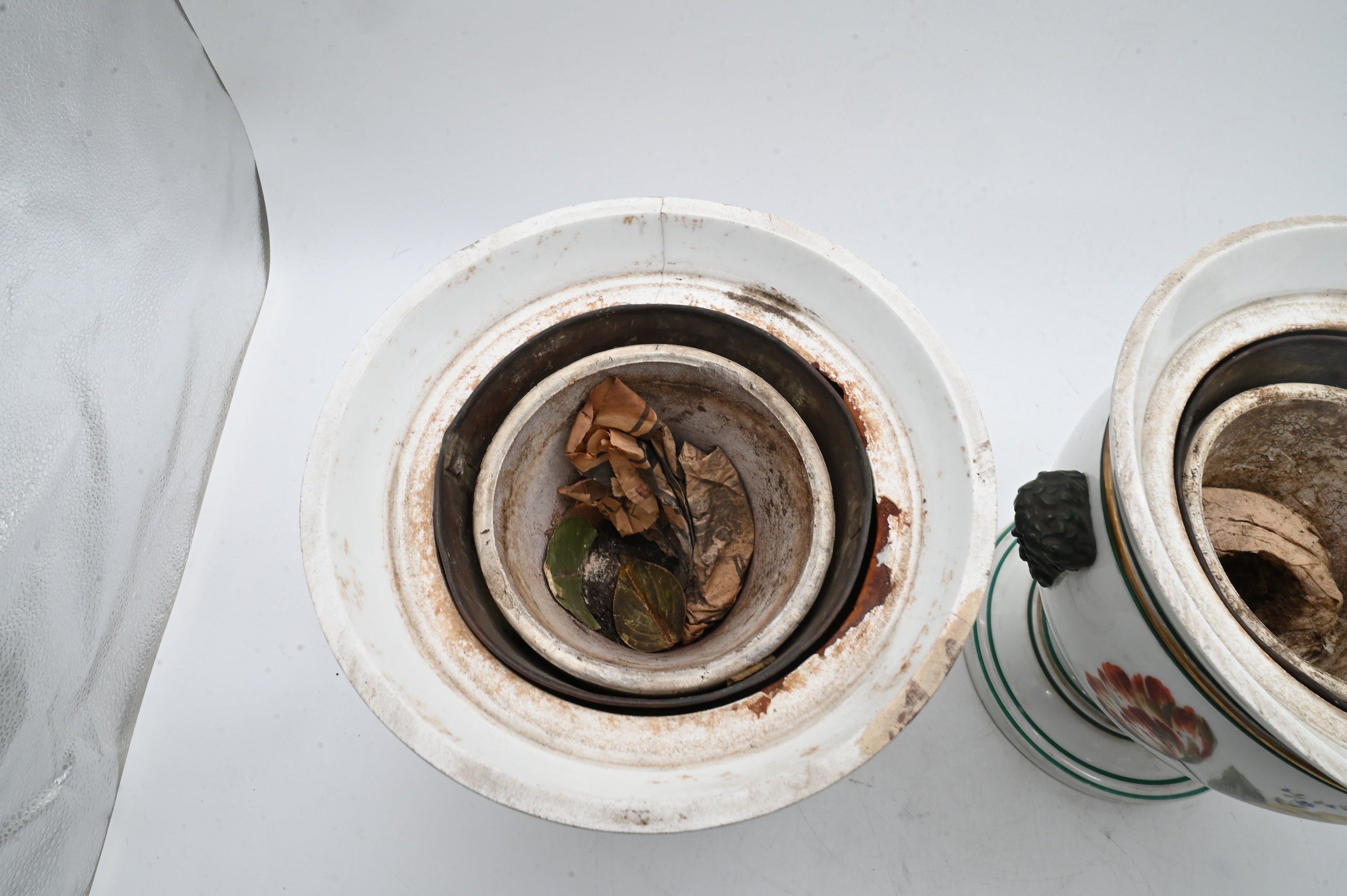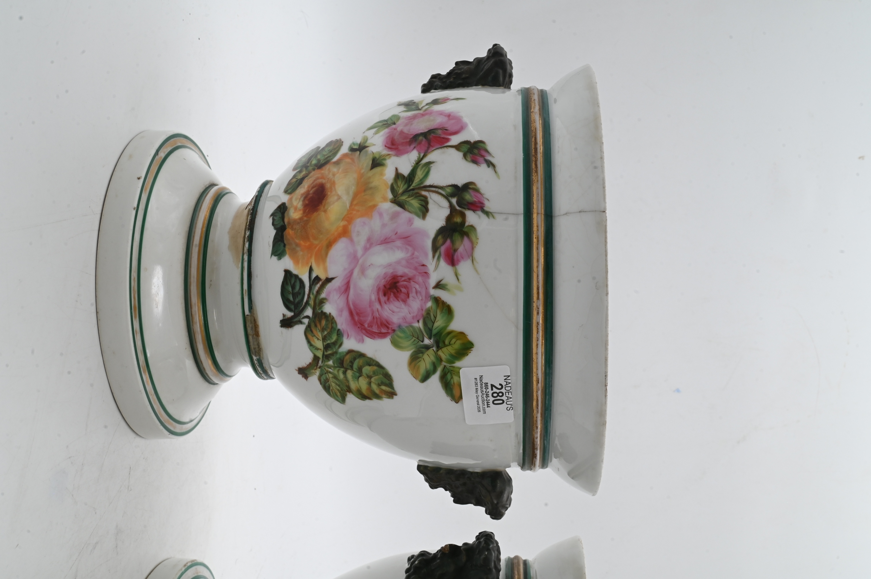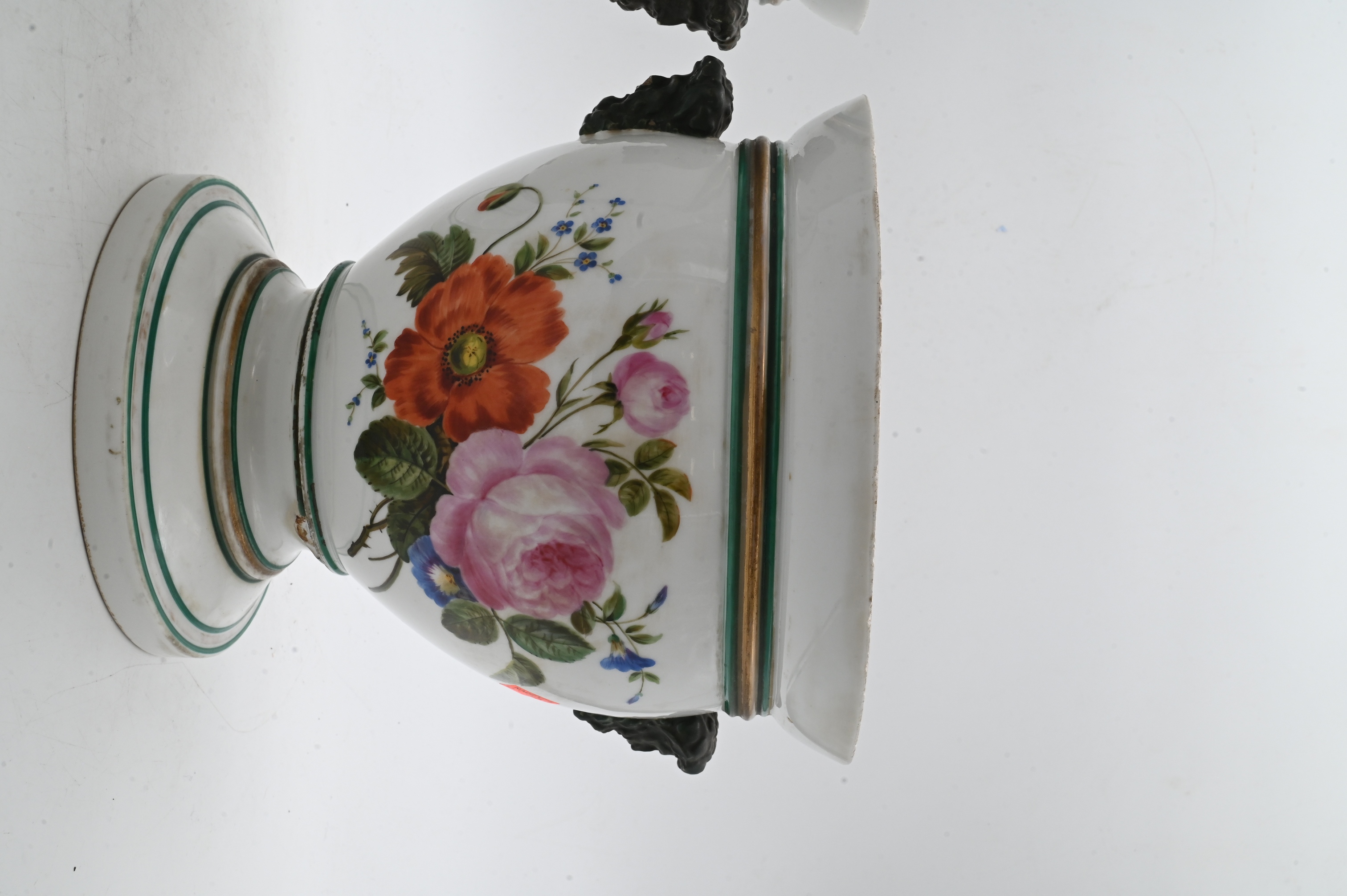 in two parts having double bust handles and flower motifs (chipping)