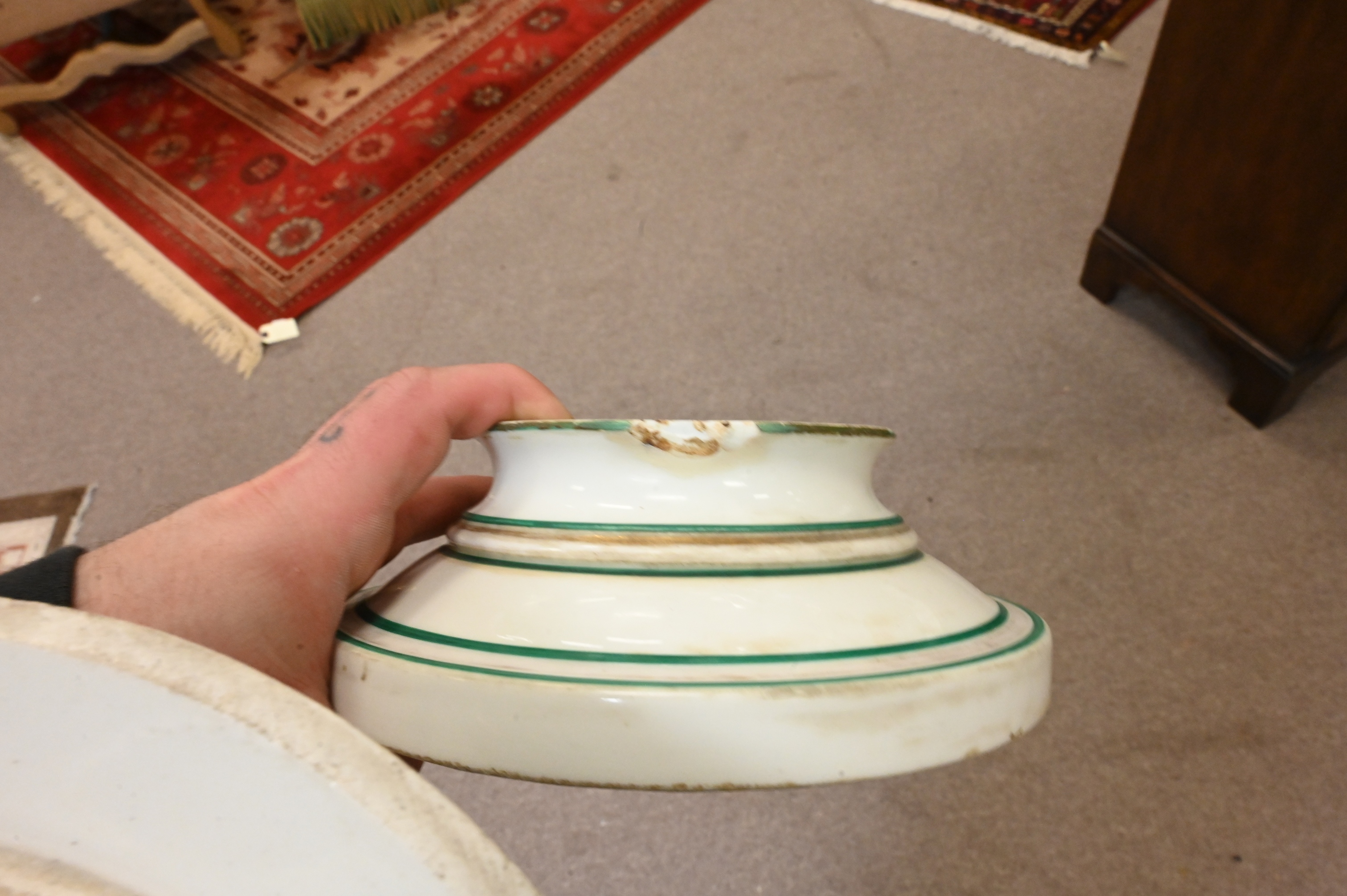 This report is provided by Nadeau’s Auction Gallery as a courtesy and reflects our opinion only. Bidders should conduct their own due diligence. The absence of a report does not imply the lot is free of issues. Assessments are based on visual inspection; unless noted, items have not been examined under UV light, movements and electrical components have not been tested, and artworks are generally not removed from frames. We are not professional conservators, and this report is not a comprehensive condition evaluation. Images provided form part of the report and should be reviewed carefully. All sales are final. For in-person inspection, please call 860-246-2444 or email info@nadeausauction.com.