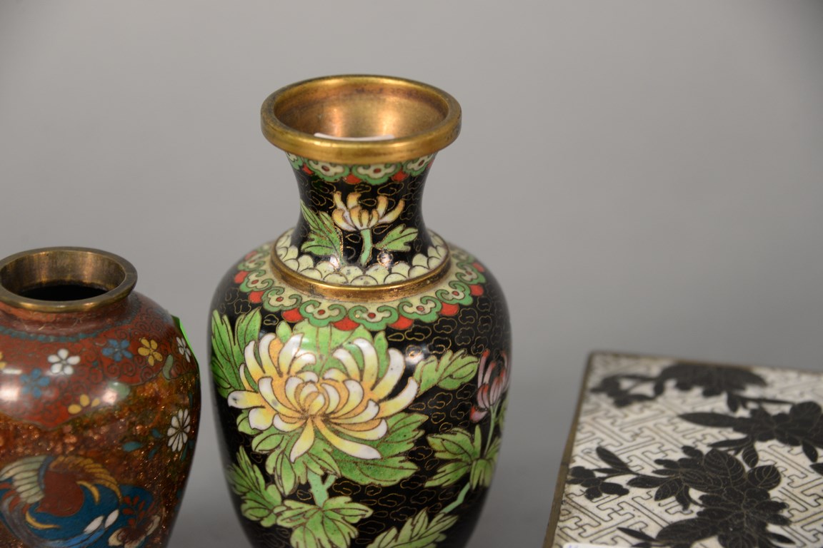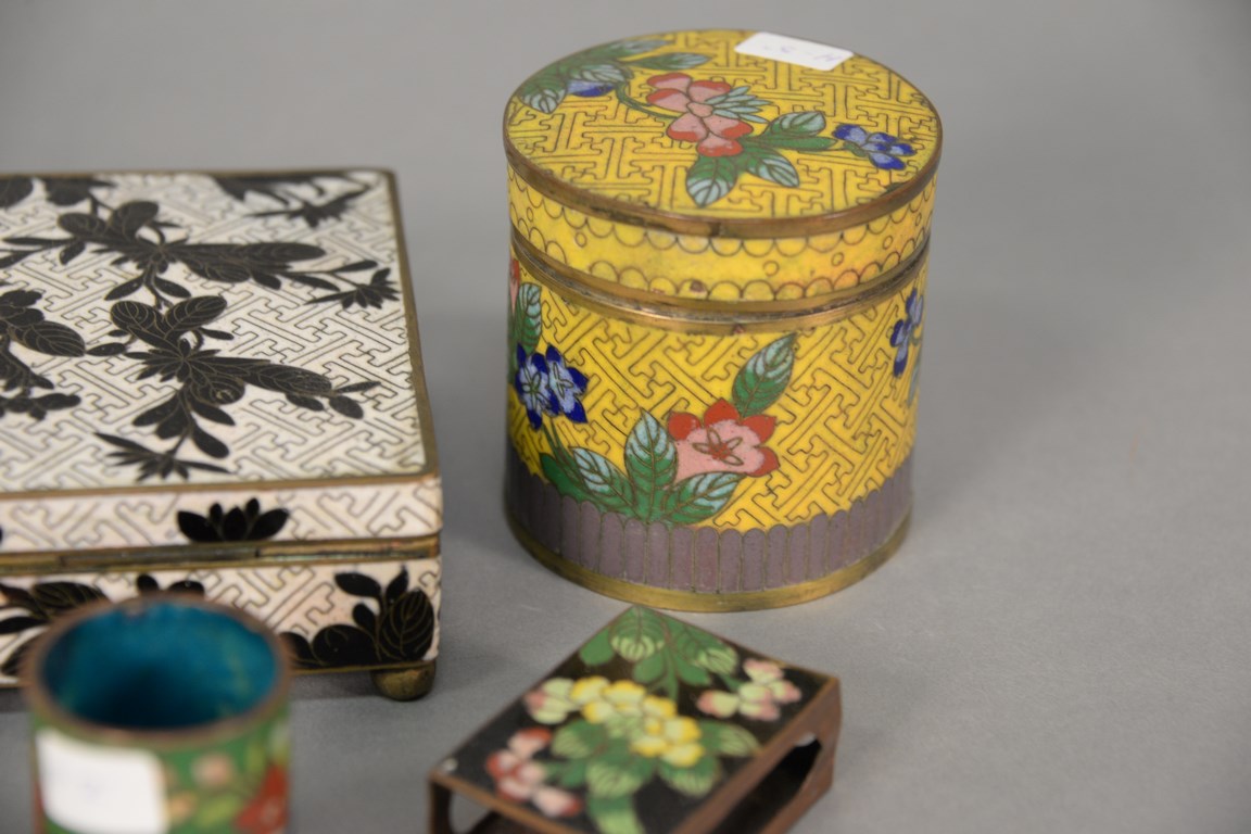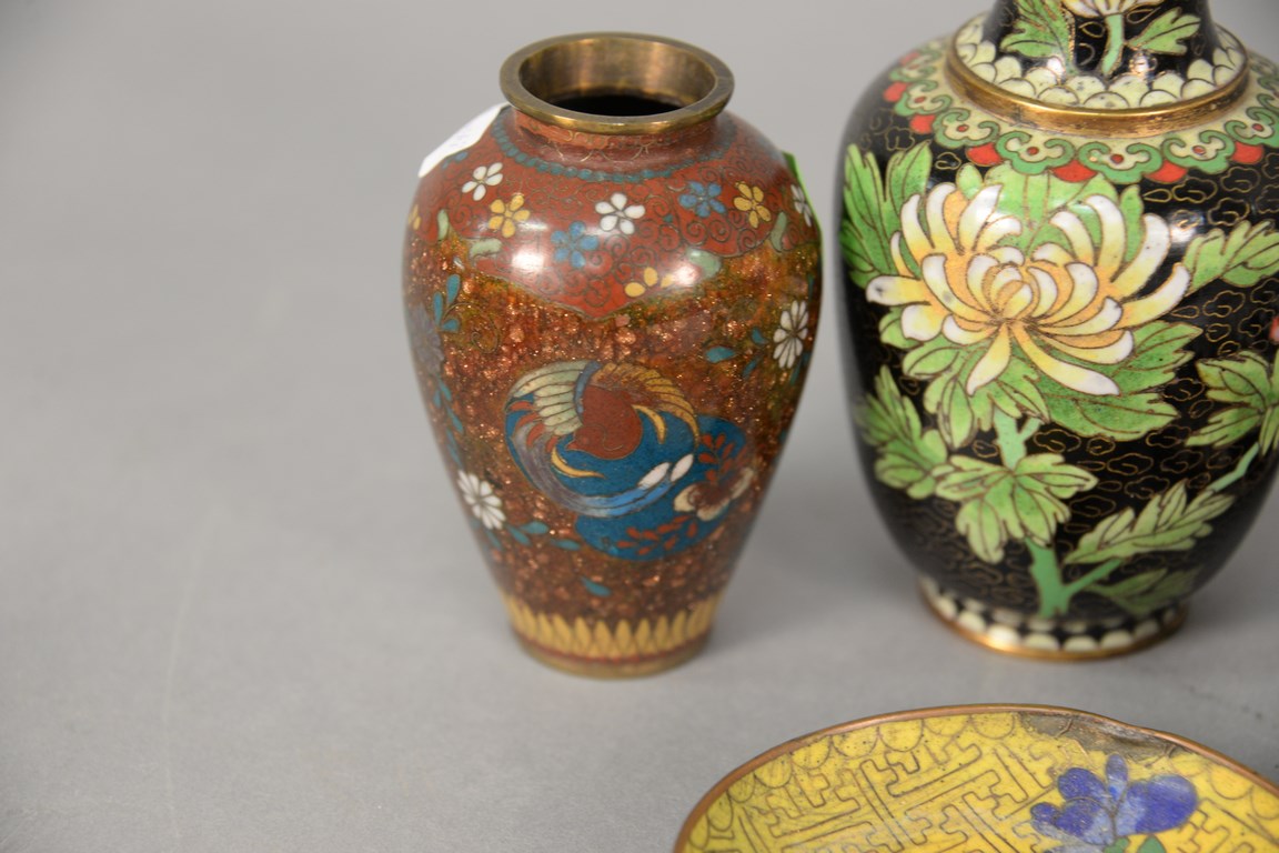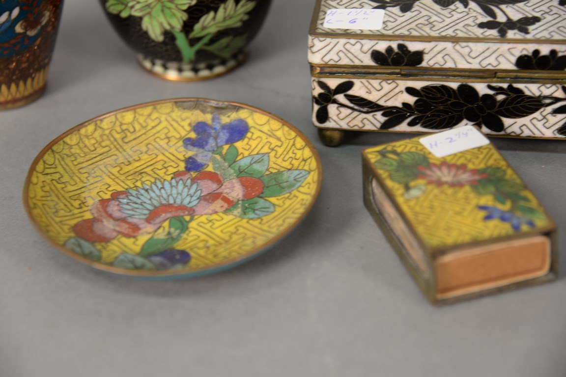 Eight Cloisonne pieces to include a gold dust vase, two boxes, etc.