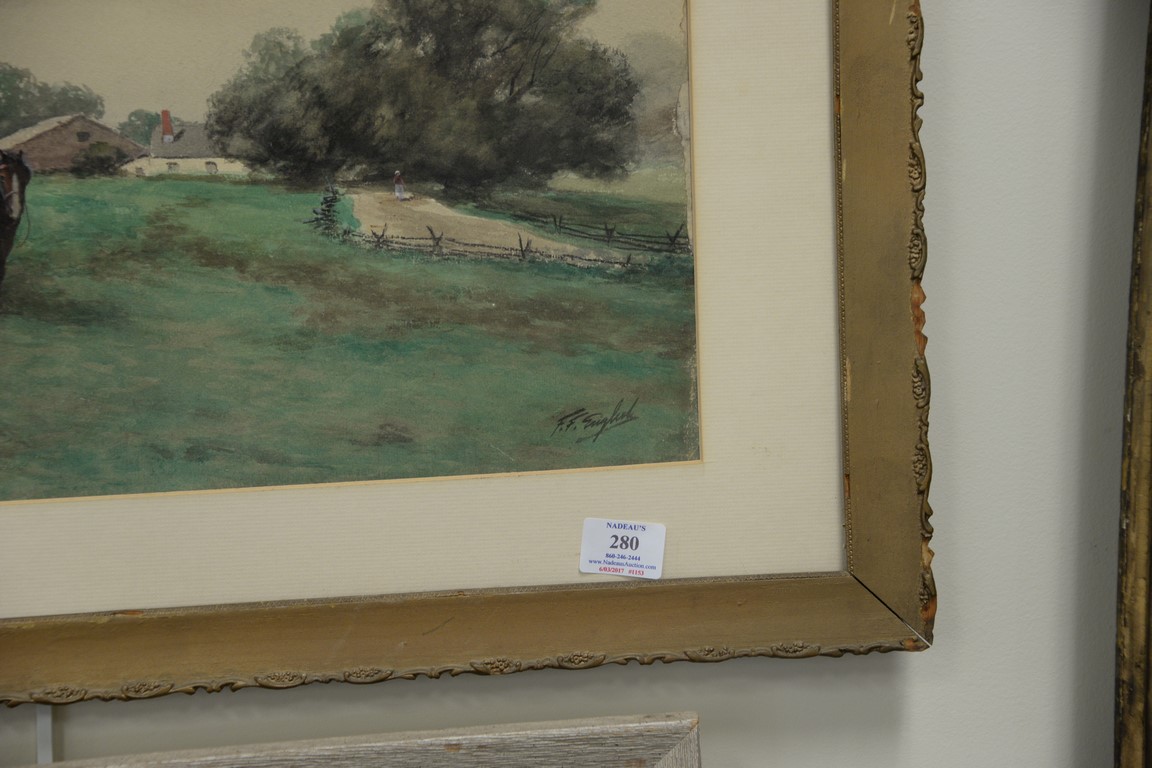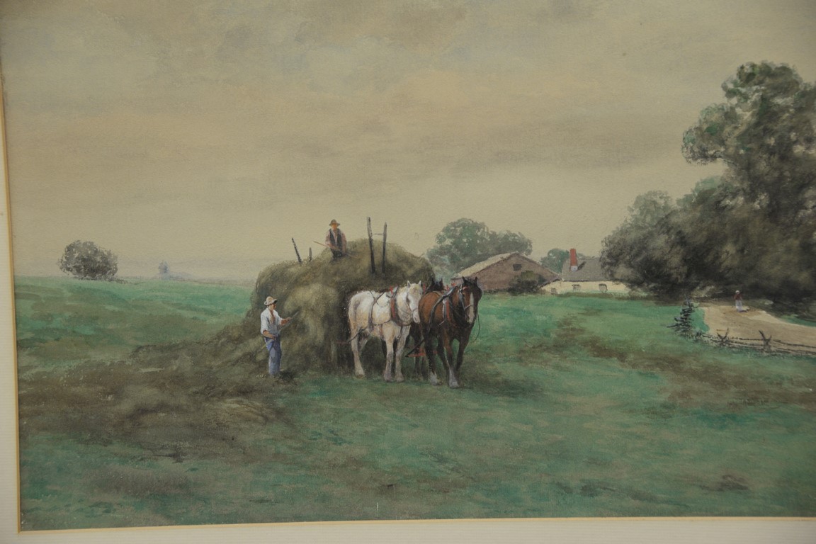 Frank F. English, watercolor, Haying, signed lower right: F.F. English. sight size 14 x 23