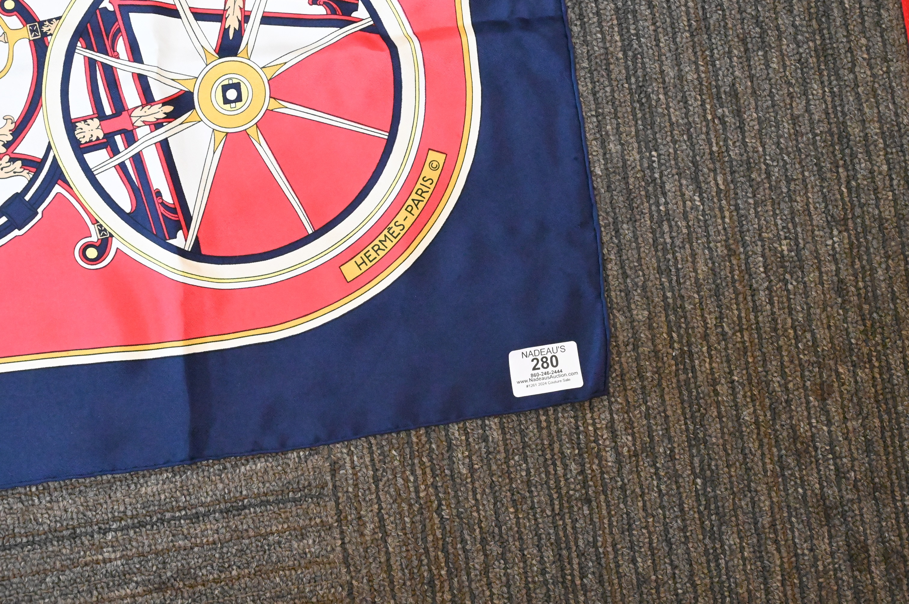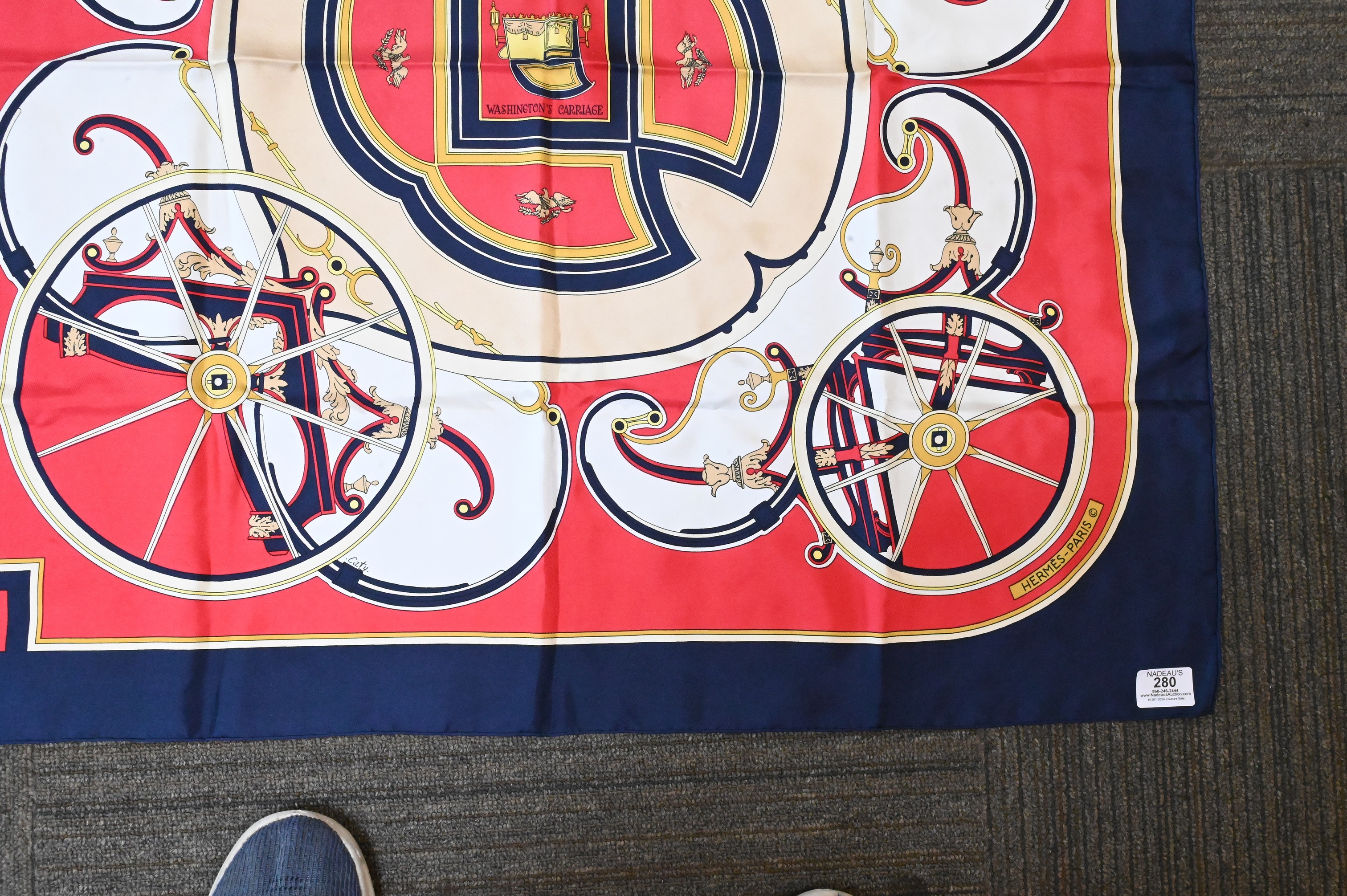 Lot 280: Hermes Paris “Washington’s Carriage” Silk Scarf