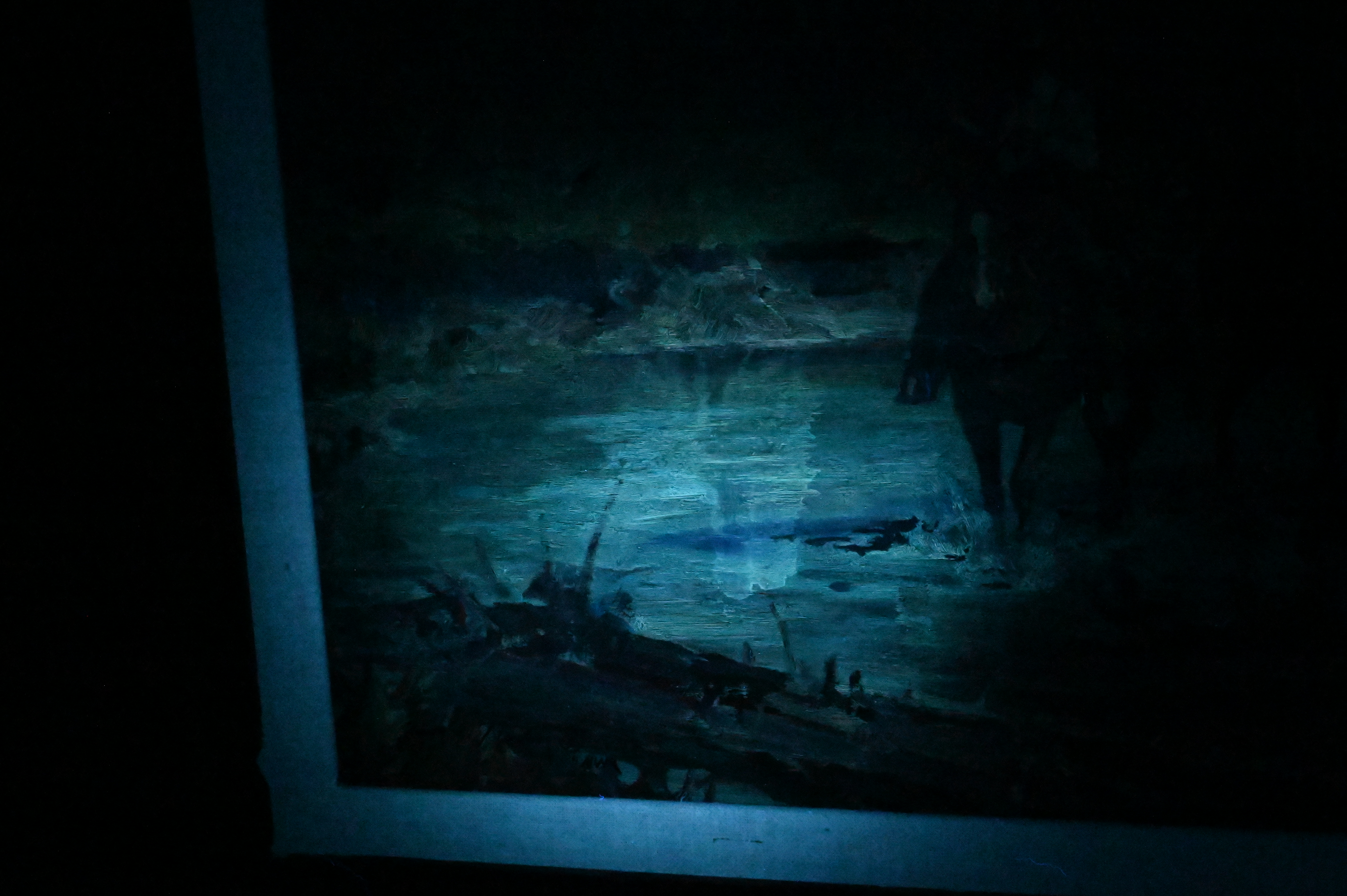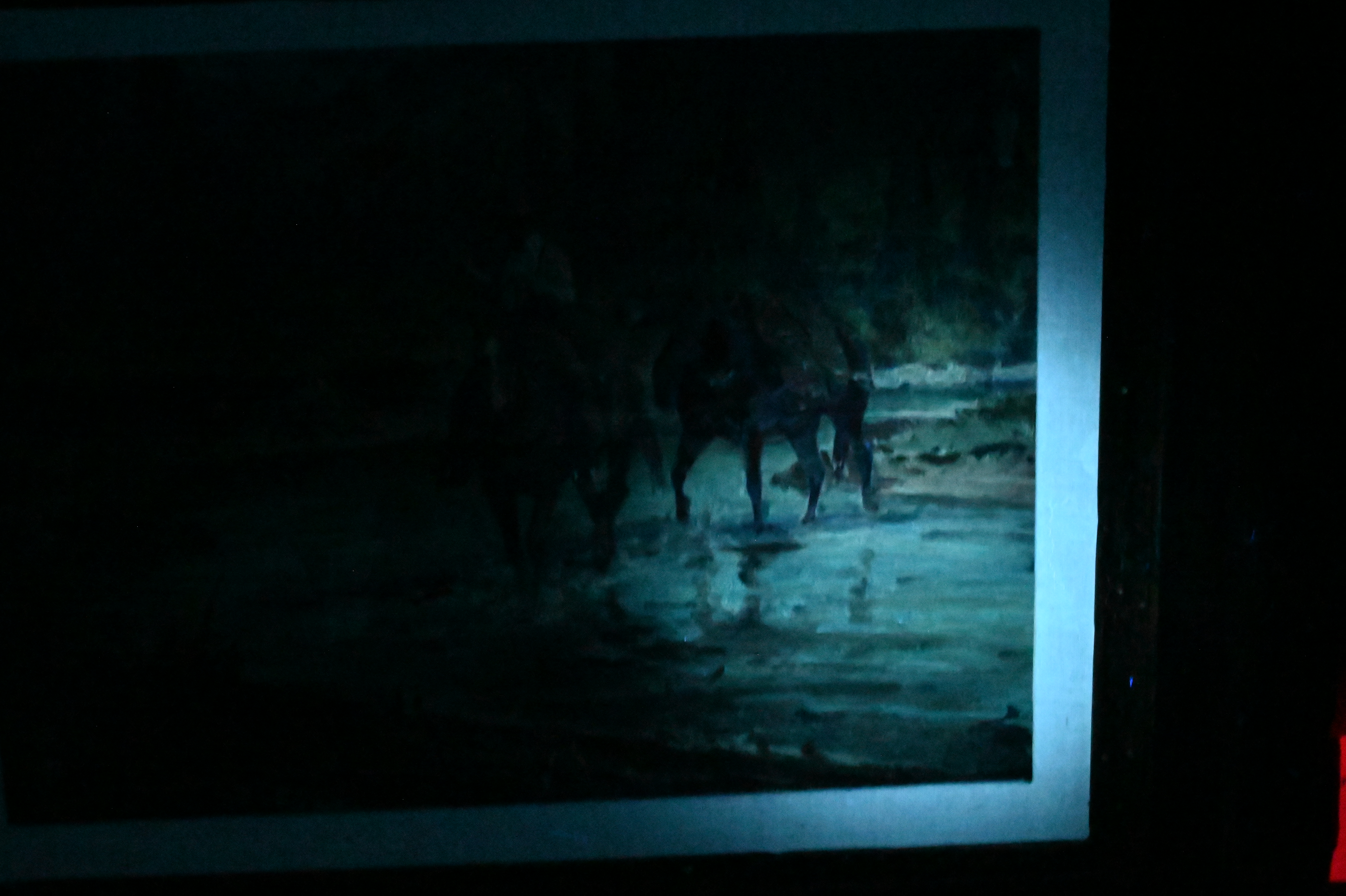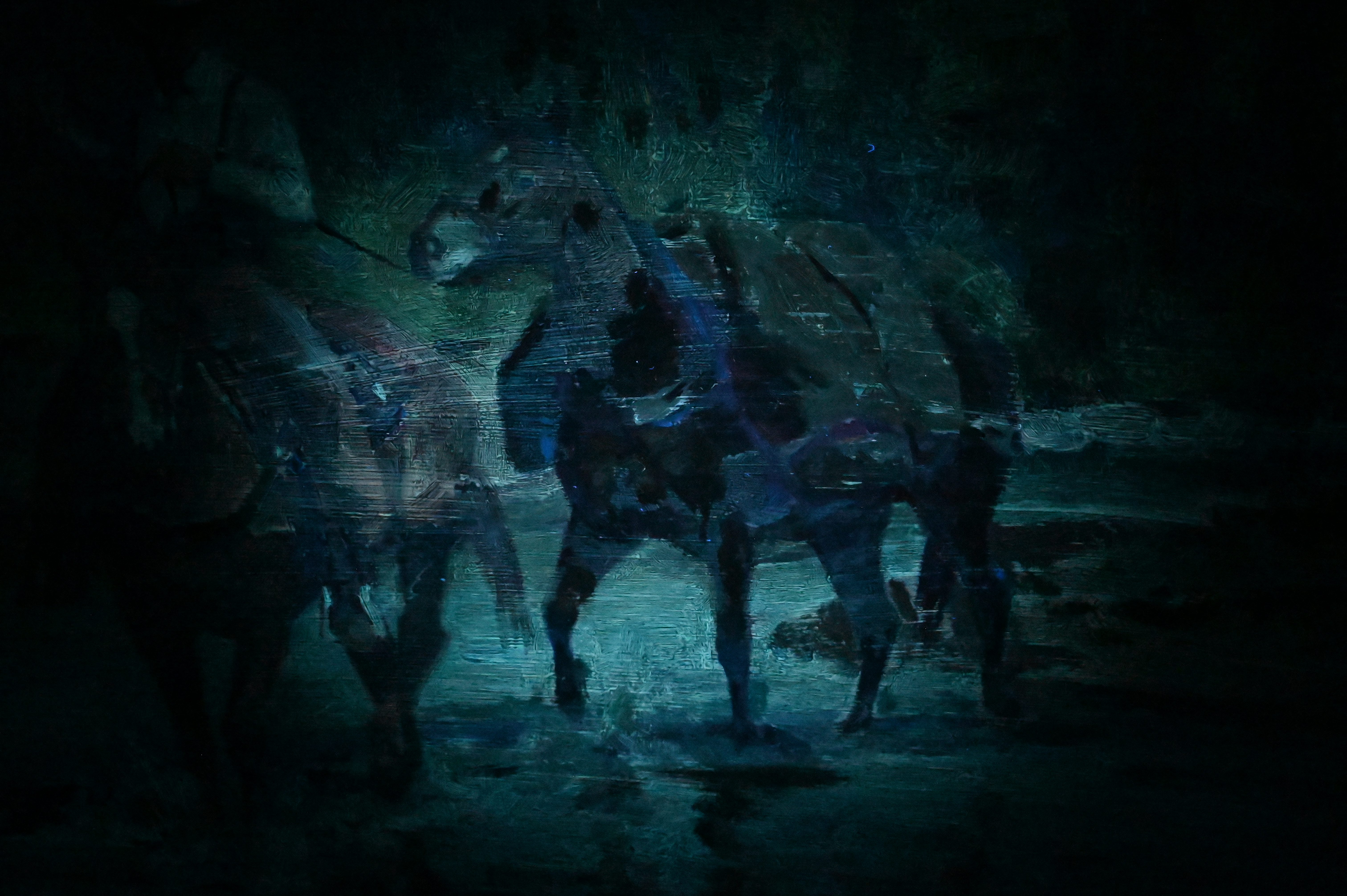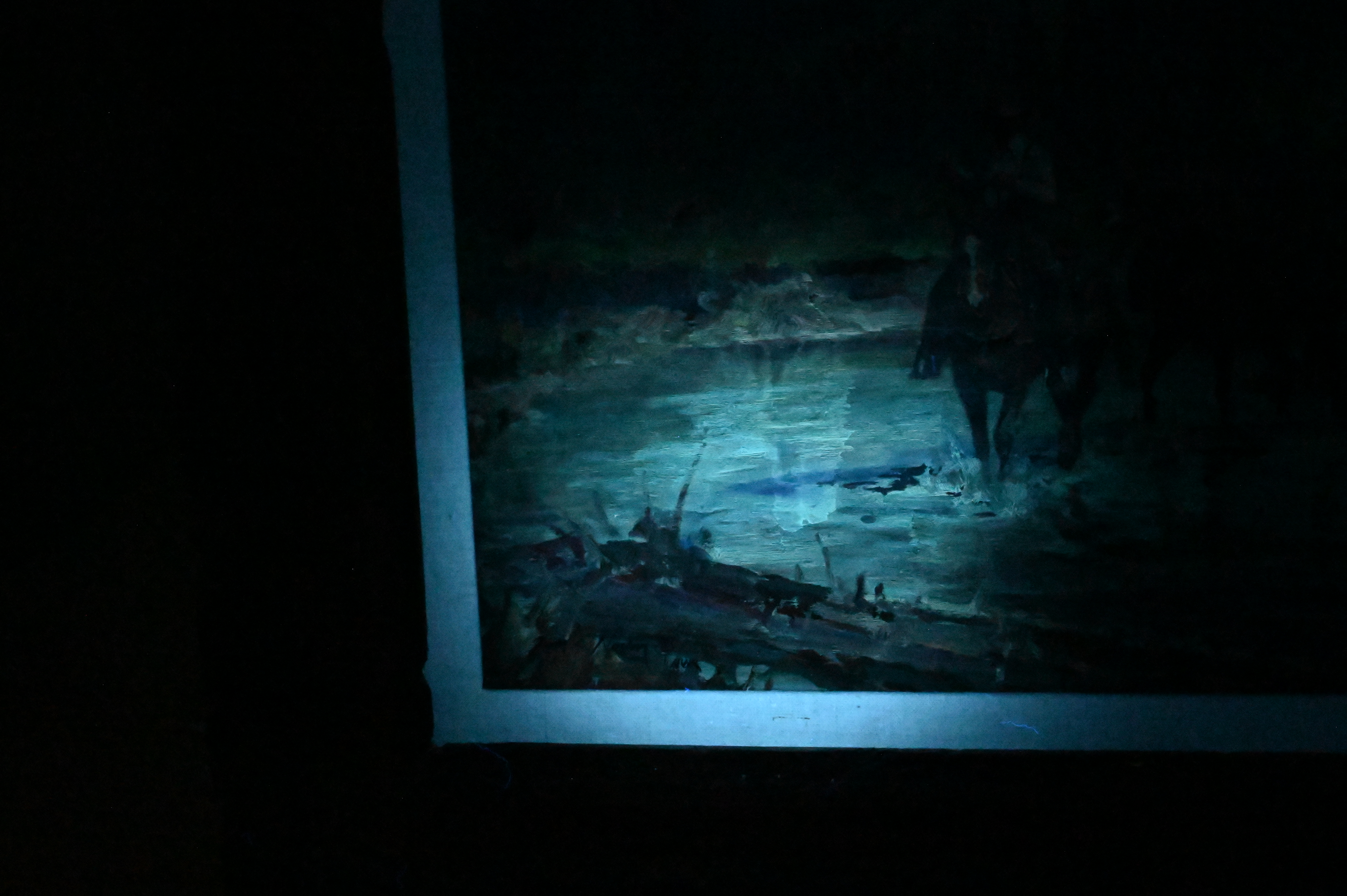 Presents well overall, varnish drips. Some inpainting to horse and water