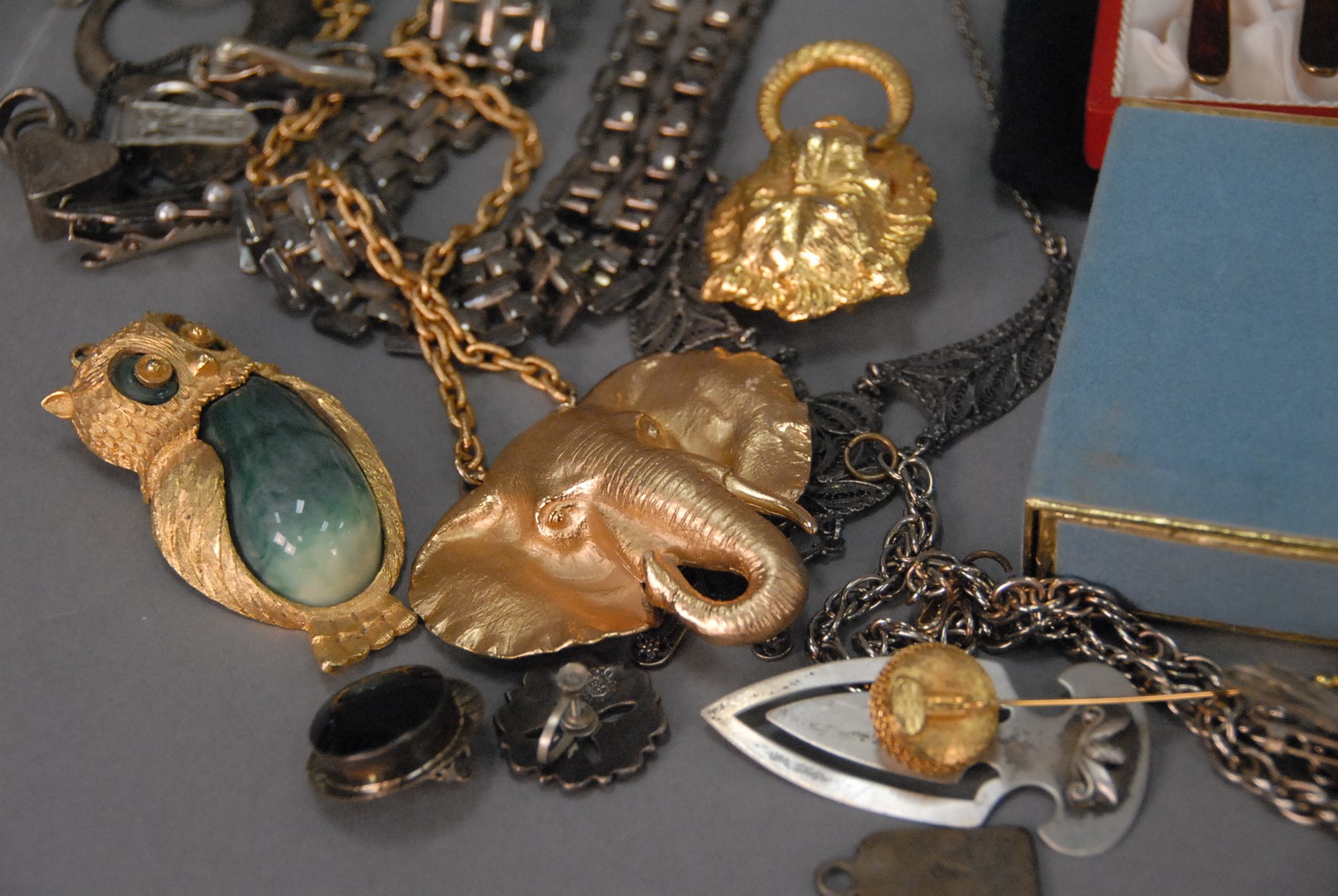 Lot 280: Lot of Bergdorf Goodman Alligator card case, Tiffany playing cards, sterling silver jewelry, Kenneth Lane & Dottie Smith costume jew…