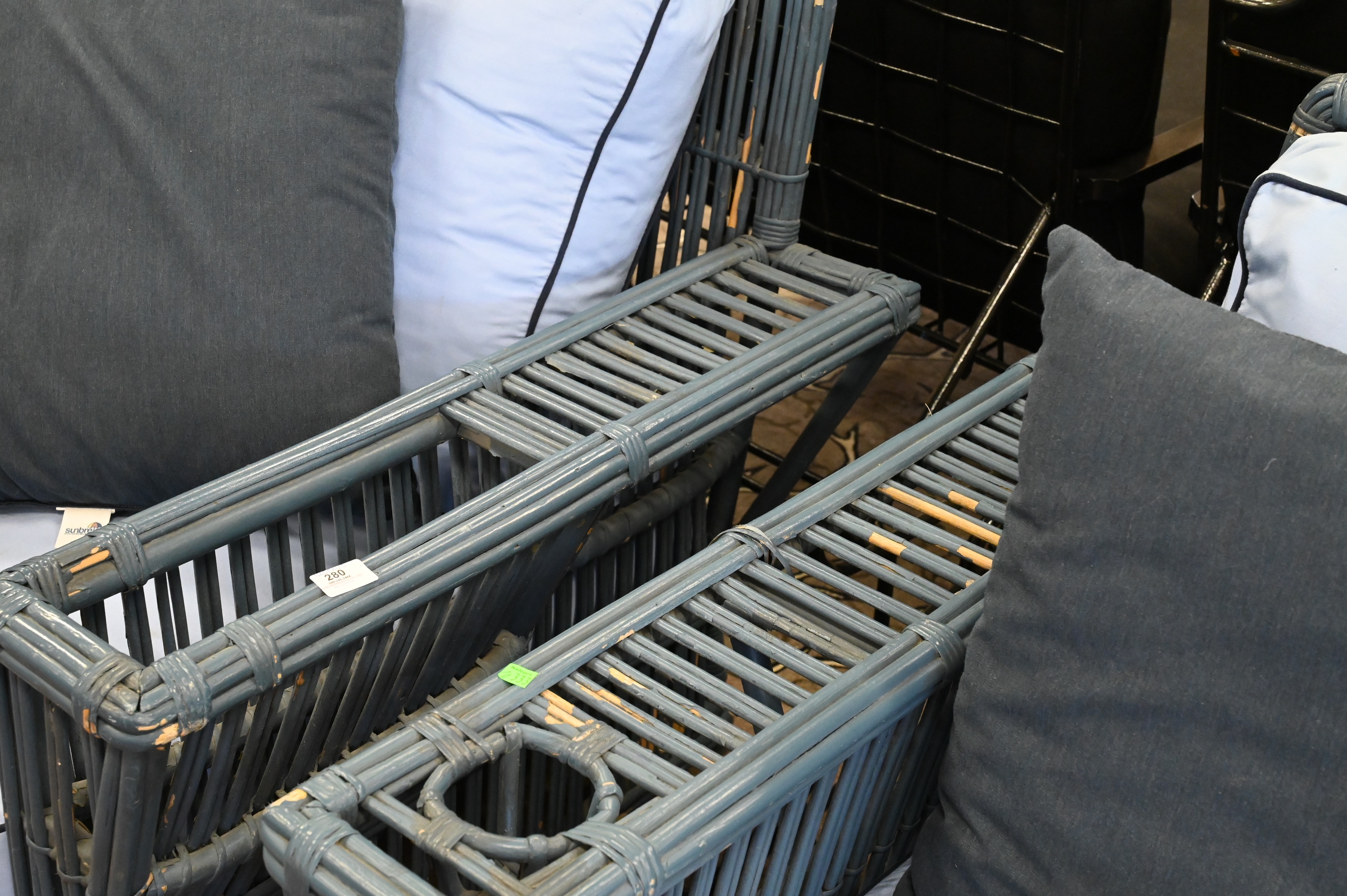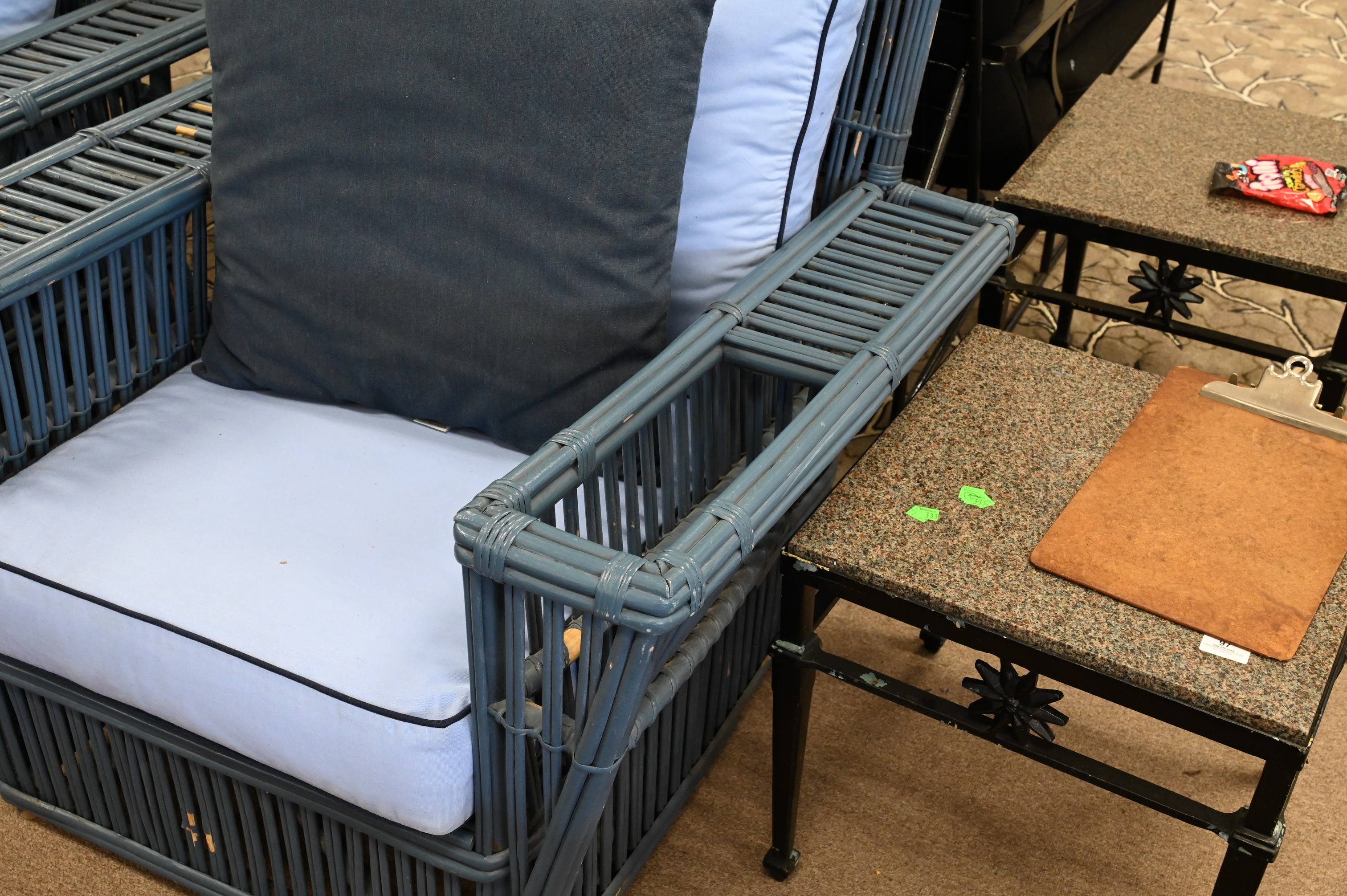 painted, having blue cushions
