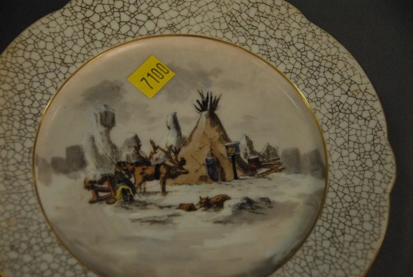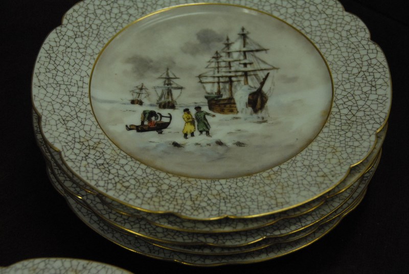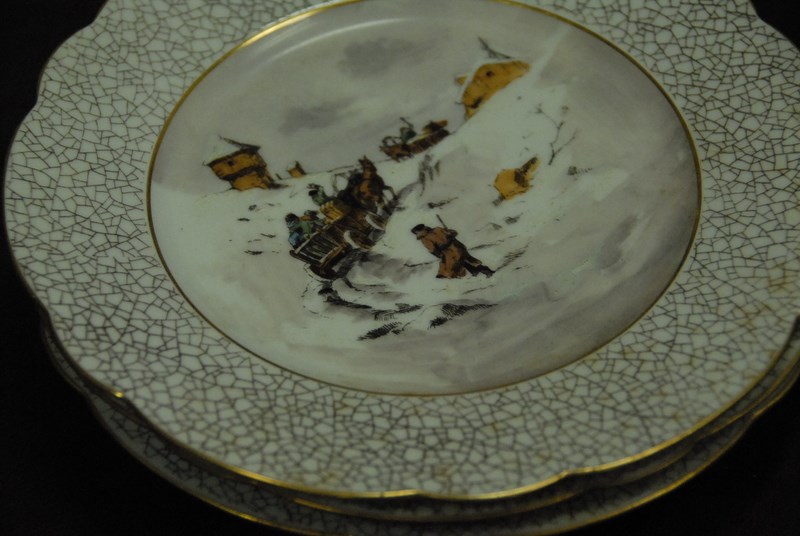 Lot 280: Set of nine porcelain plates with winter scenes, possibly Russian, dia. 8 1/2 in.