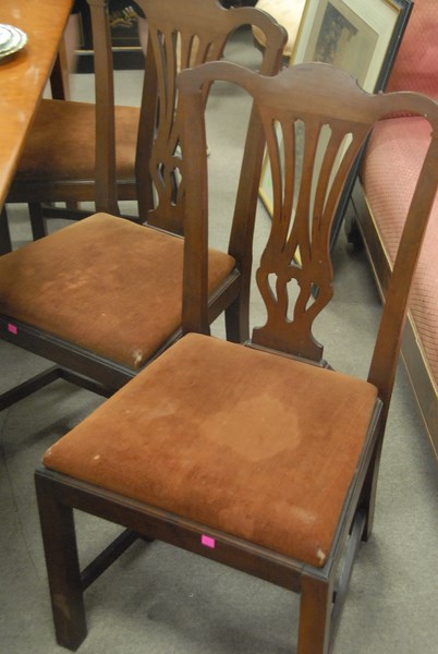 Set of seven Chippendale style dining chairs.