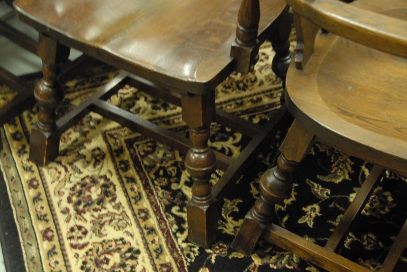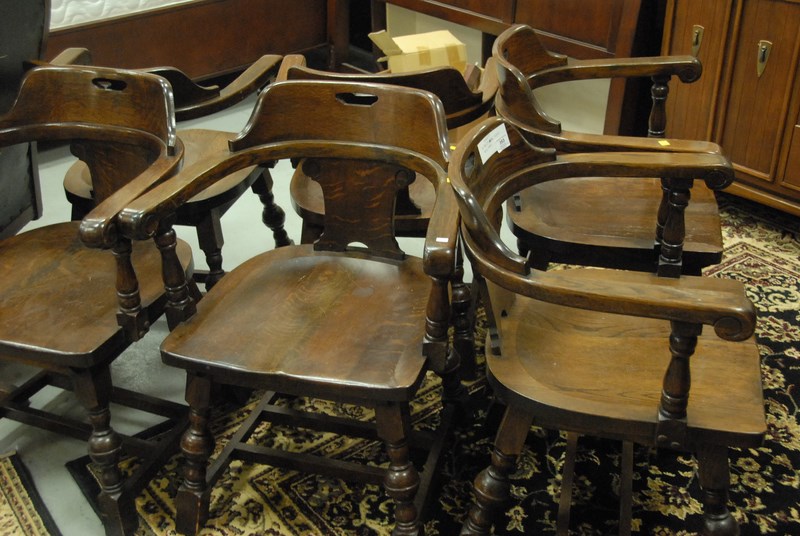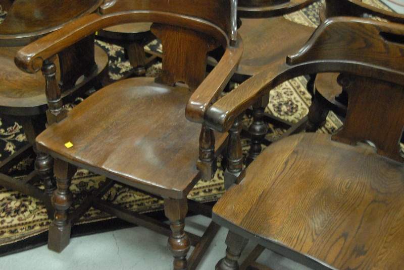 Set of six oak barrel back chairs signed M. Reischman & Sons, N.Y.