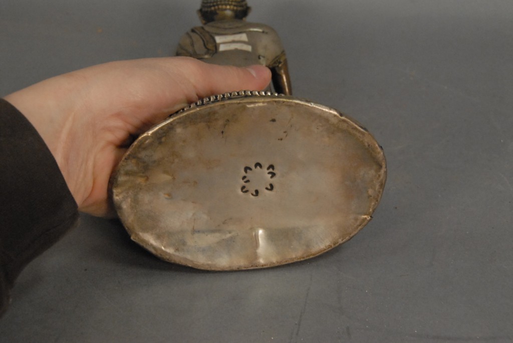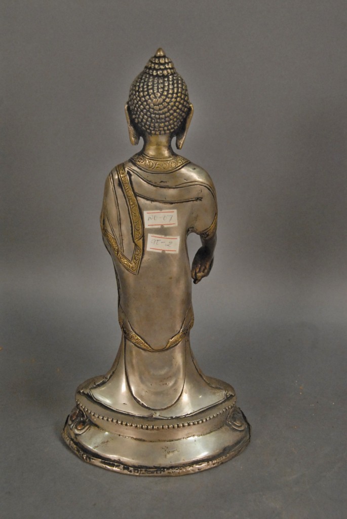 Silver and brass male figure standing on a lotus base, ht 11 1/2.