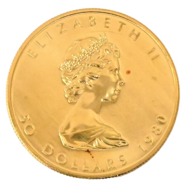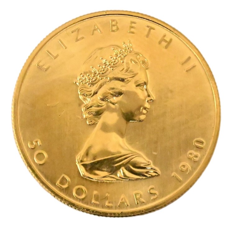 Lot 280: Three 1980 Canadian One Ounce Fine Gold $50 Maple Leaves