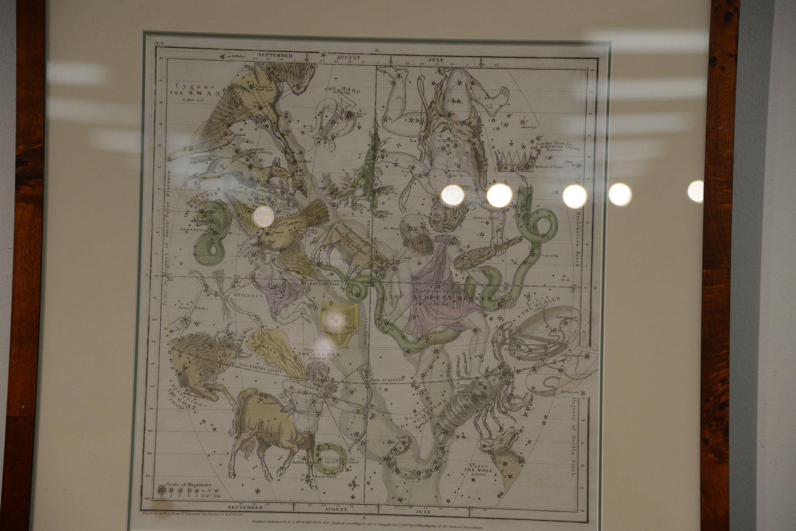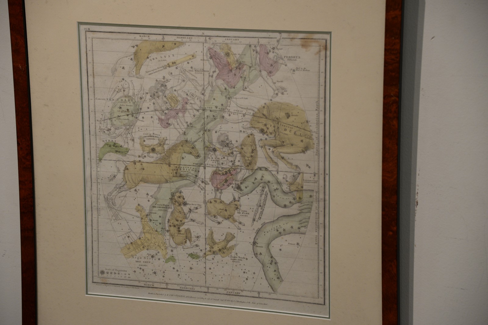 Lot 280: Three celestial maps framed and matted published Hartford by Huntington 1835 engraved by Evans.14 1/2 x 13 1/2