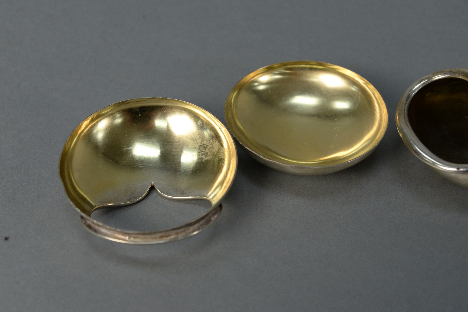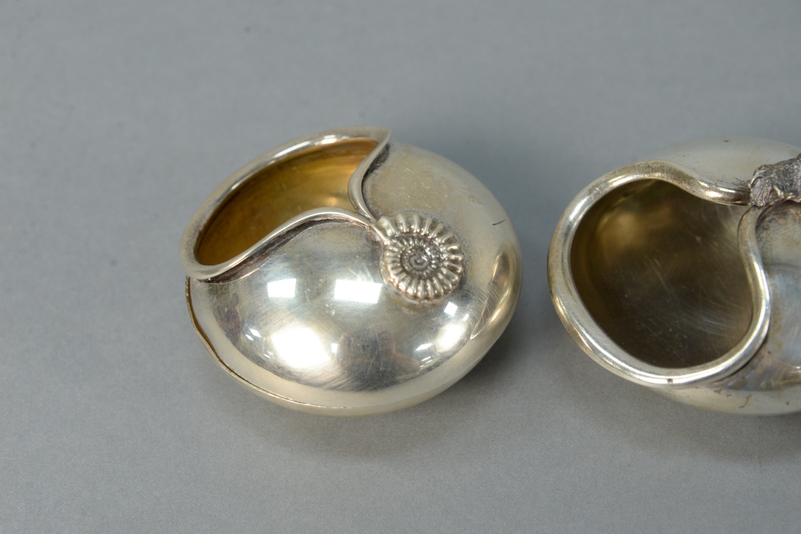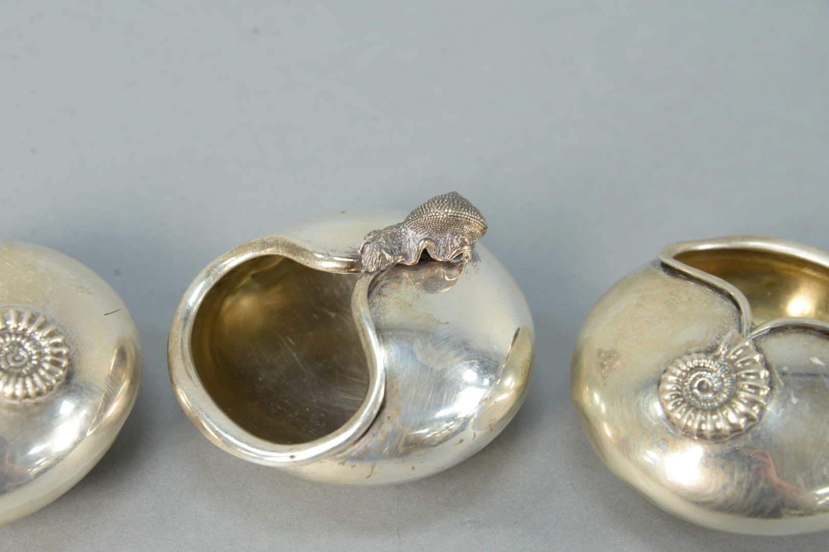 Lot 280: Three Jocelyn Burton Silver Open Salts round form, two with shell motif, and one snail cellar one with separation from bottom…