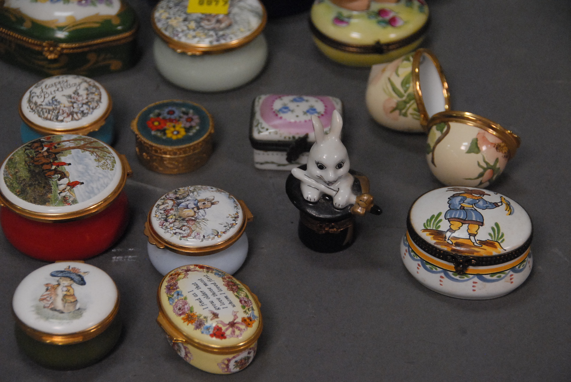 Tray lot of small boxes. Provenance: Estate of Judy Gengras McDonough of West Hartford, CT.
