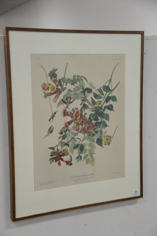 Two large plant and flower prints including Solanum Pomiferum in burl frame ss 19 1/4 x 16 1/2 and after John Audubon Baby Throated Hummingbird ss 24 1/2 x 19. Provenance: Property from Credit Suisse’s Americana Collection
