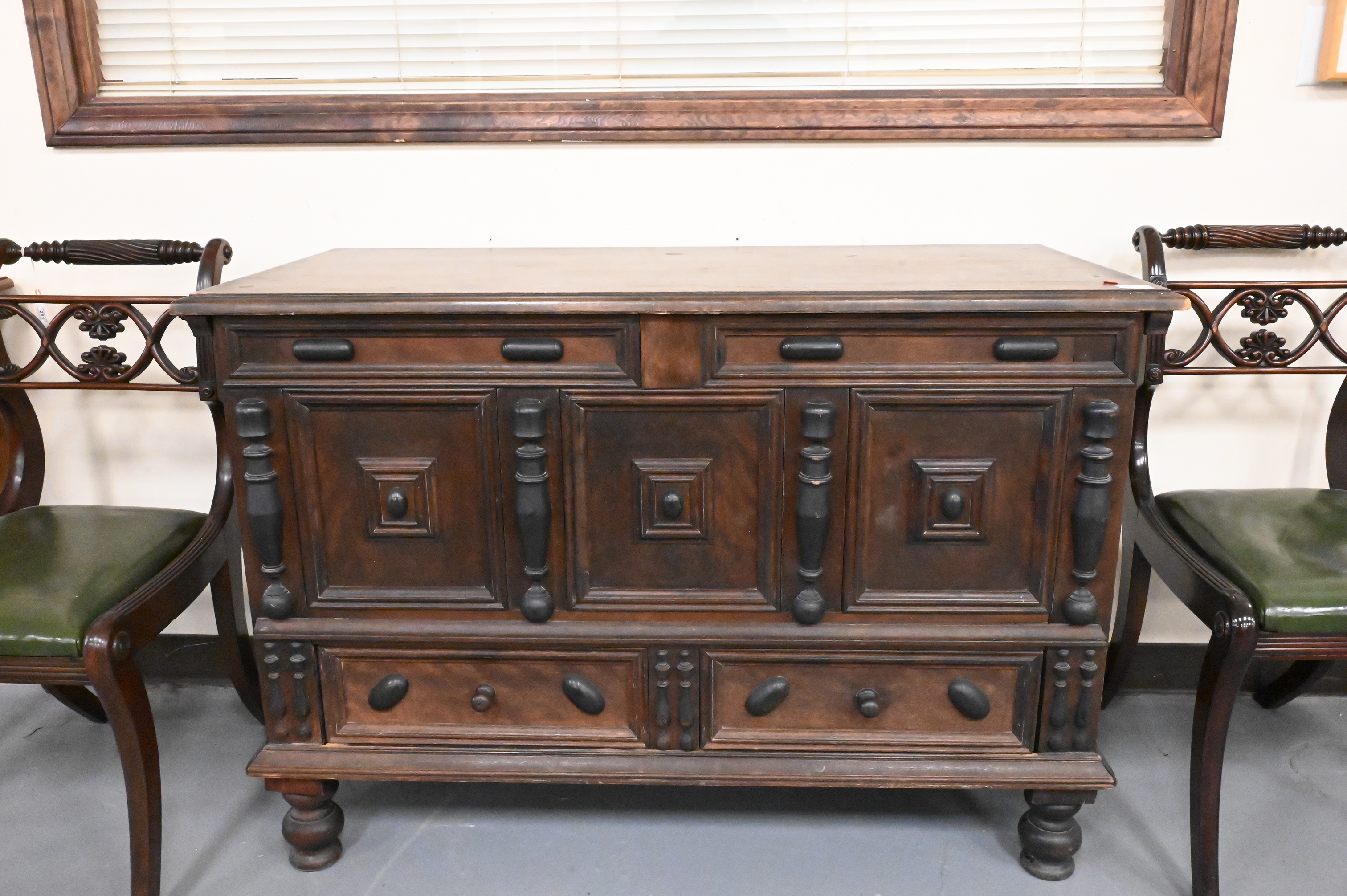 Lot 280: Wallace Nutting Oak Lift Top Pilgrim Style Chest