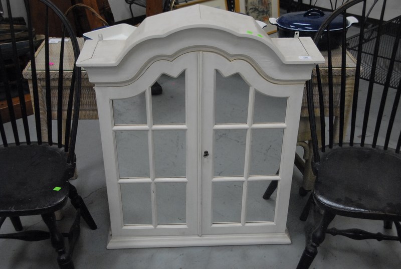 White painted hanging cabinet with mirror doors, ht. 36in. wd. 31in. dp. 7in.