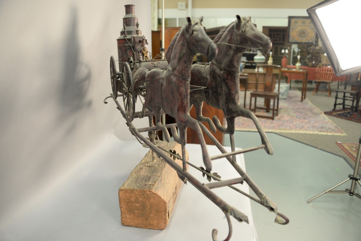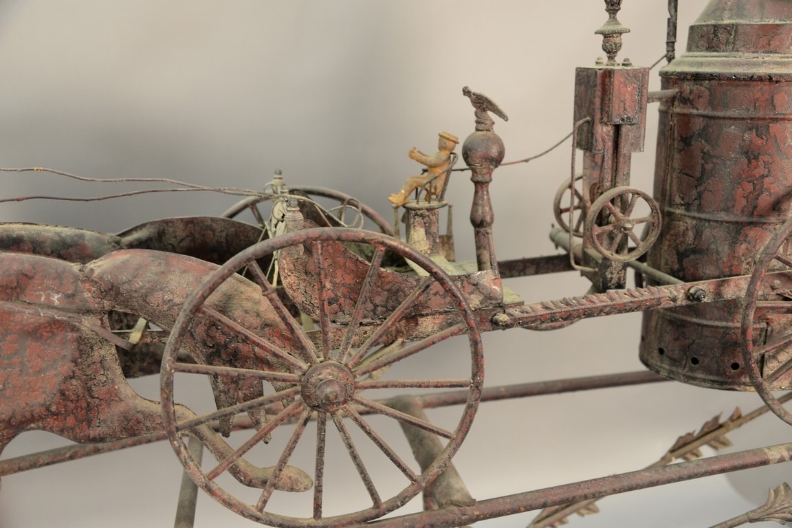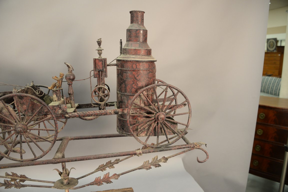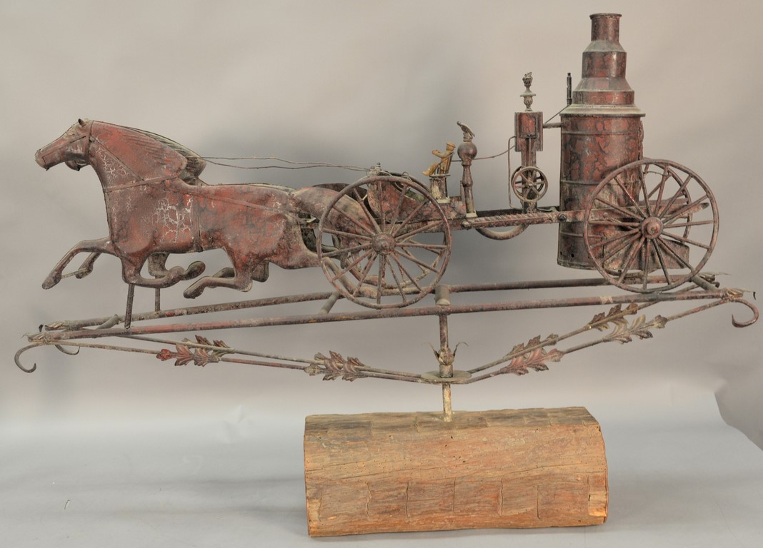 Weathervane horse drawn fire apparatus, late 20th century. ht. 38in., lg. 57in.