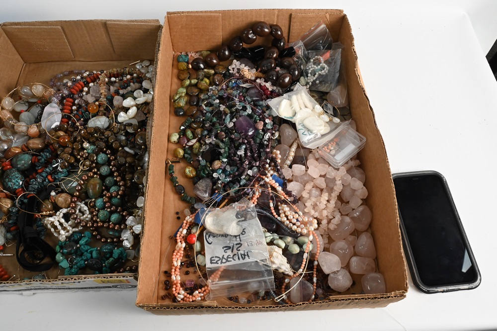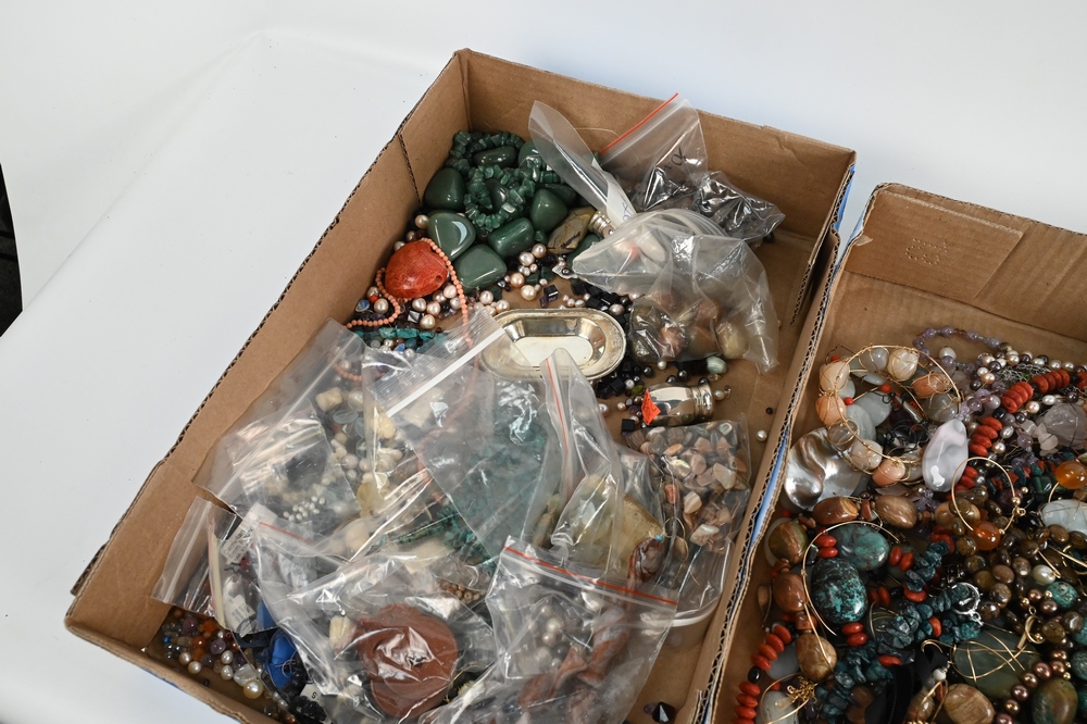 Three Tray Lots of Costume Jewelry, to include turquoise, mother of pearl, quartz, etc.
