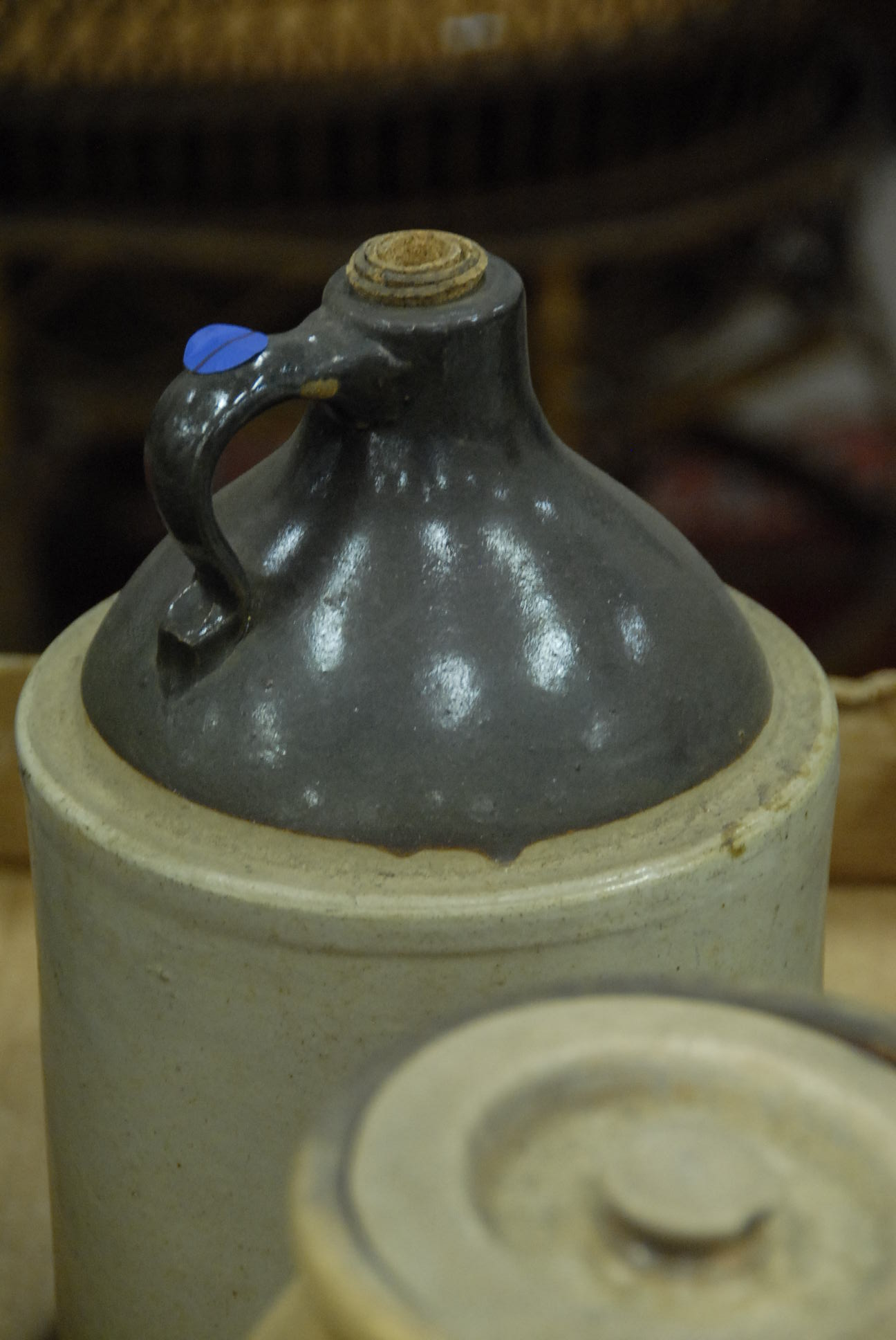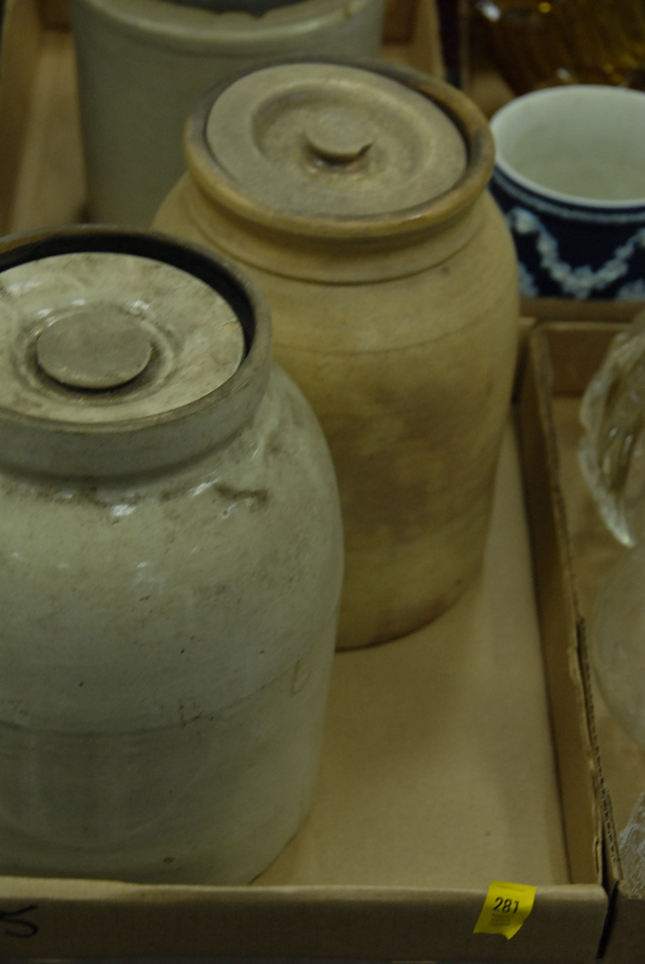 Lot 281: 3 stoneware pieces, a jug and 2 crocks.