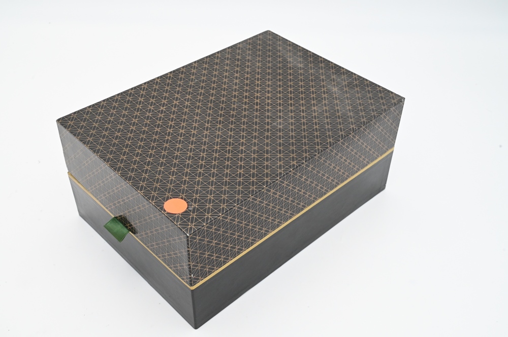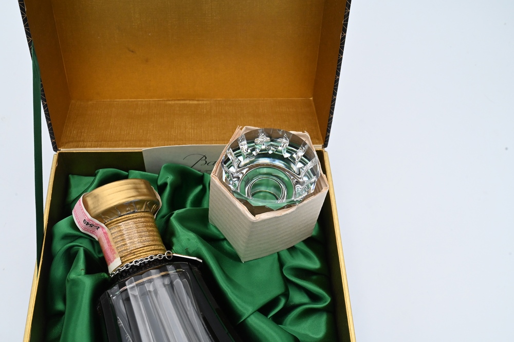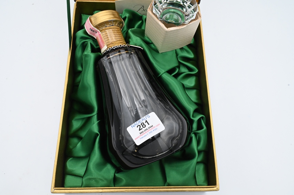 Lot 281: Baccarat Biscuit Extra Grande Fine Champagne Cognac, full decanter, in original box, height 5 inches, width 11 1/2 inches, depth 8 inches.