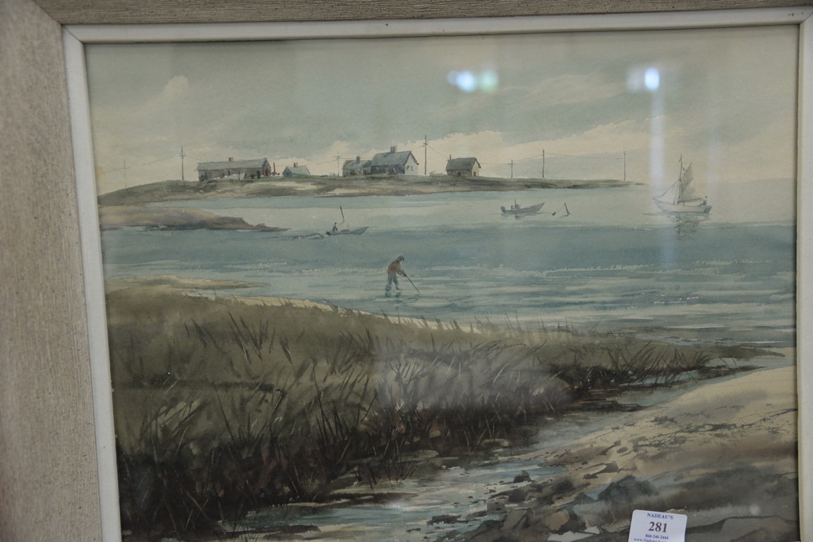 Lot 281: Brian Truelove 20th century, watercolor, Clamming North Shore Mass, signed lower left Brian Truelove. 14 x 18