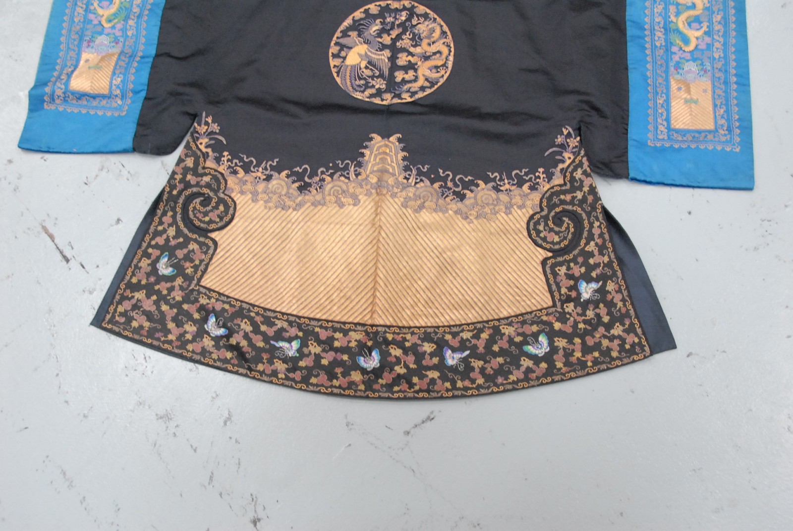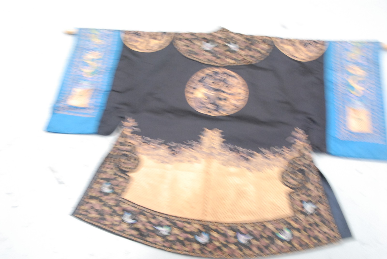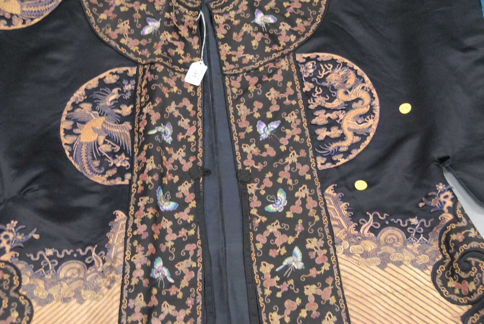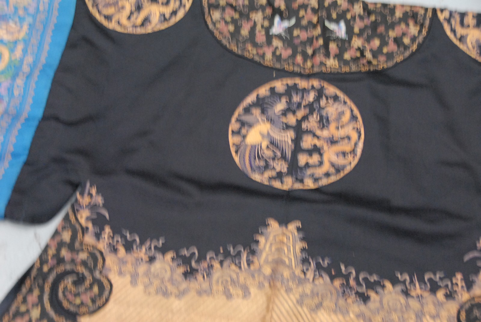Chinese black ground phoenix bird robe, having three phoenix birds.
