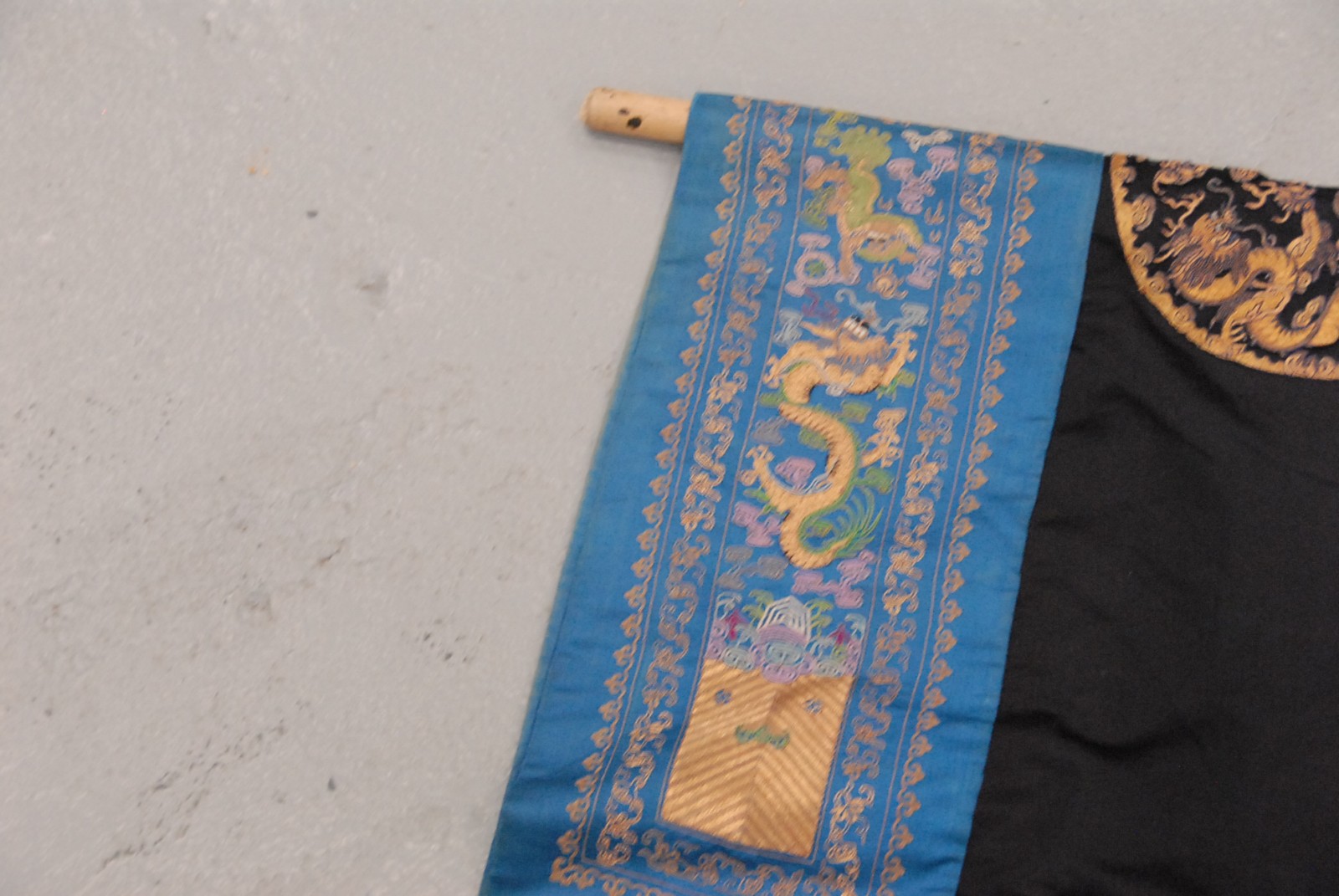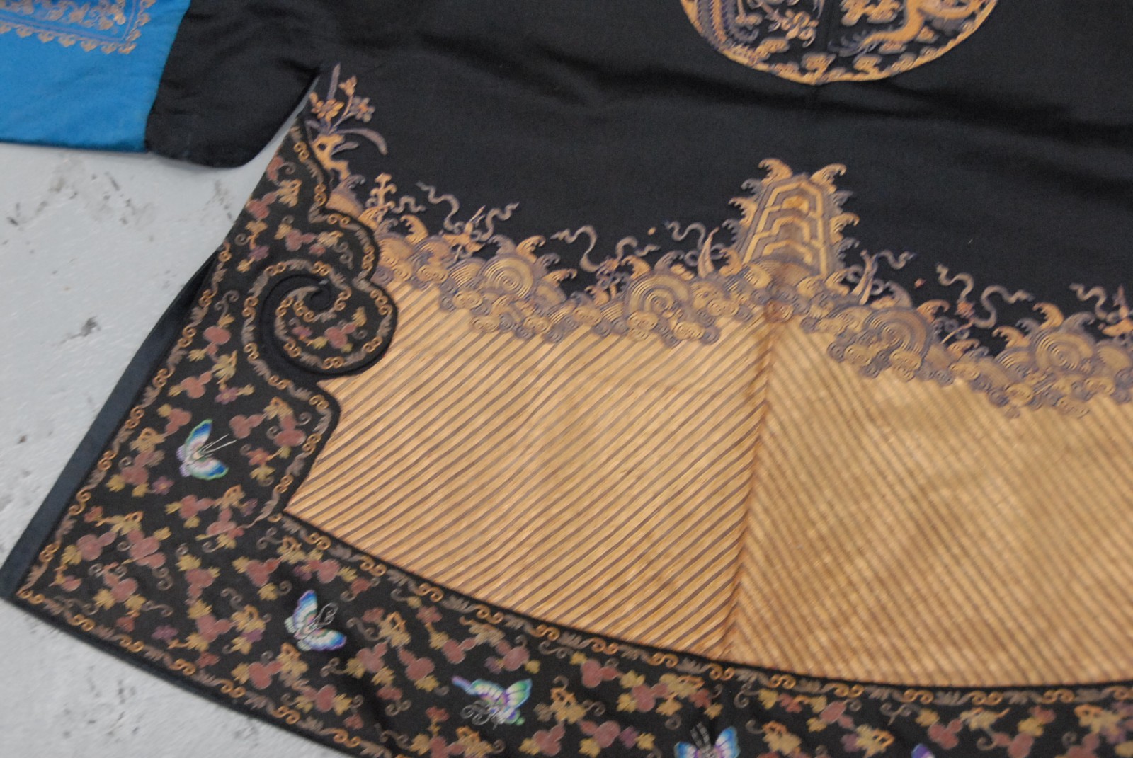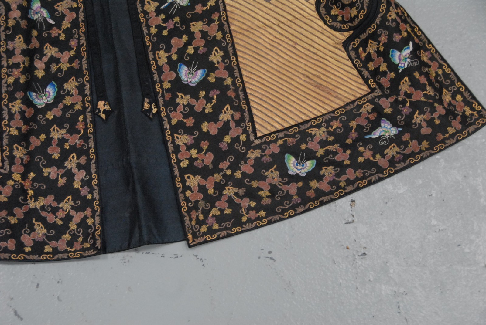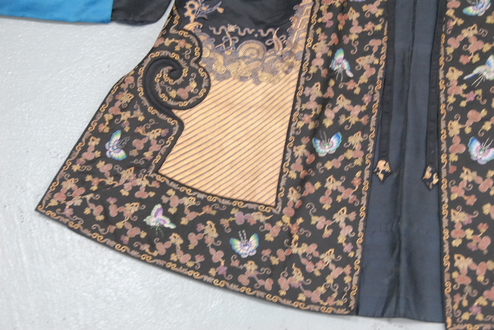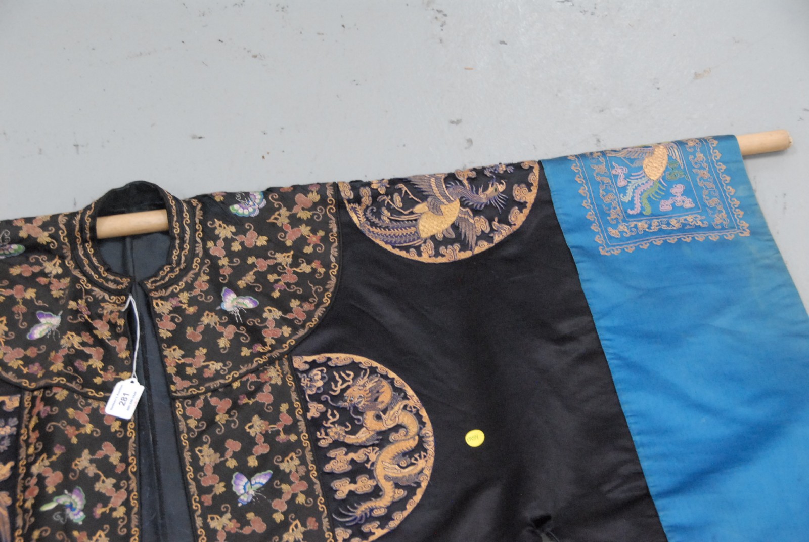 Chinese black ground phoenix bird robe, having three phoenix birds.
