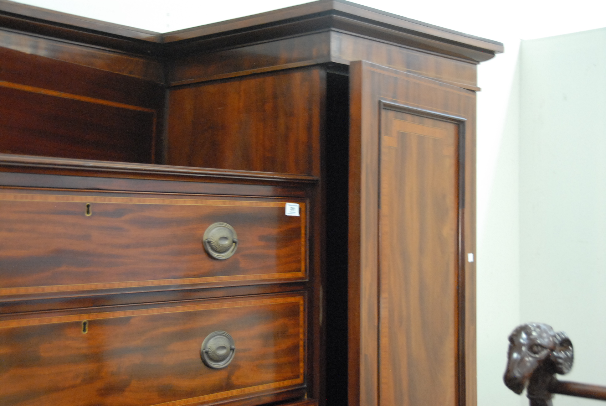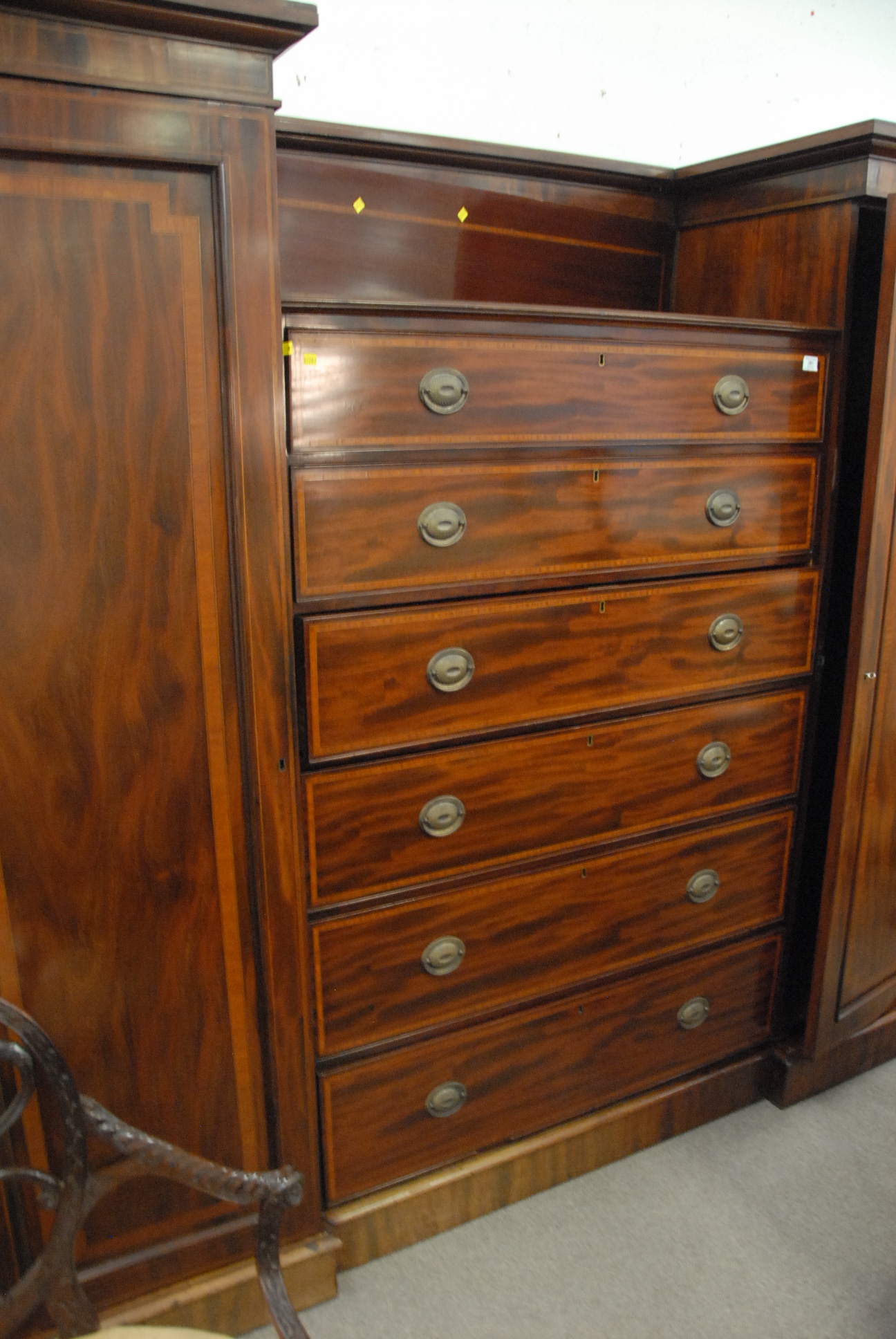 Lot 281: English mahogany cheferobe with armoire doors, ht. 86in. wd. 94in. dp. 25in.