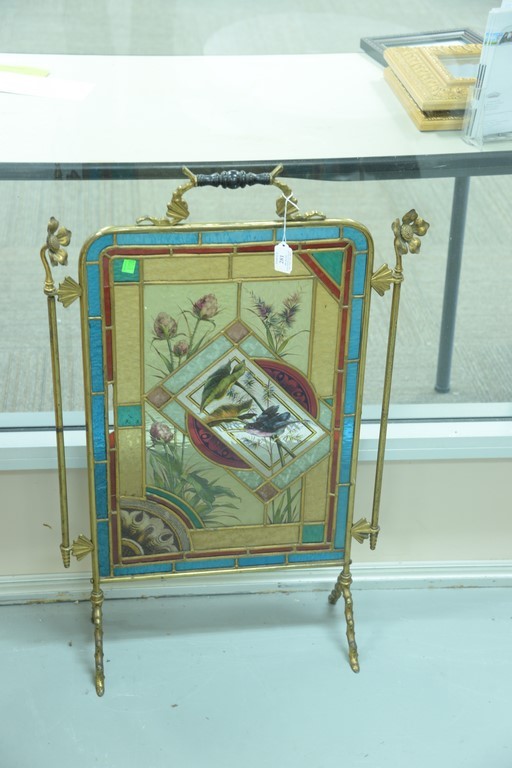 Fireplace equipment to include two sets of fire tools, an iron horse head, and horseshoe andirons.