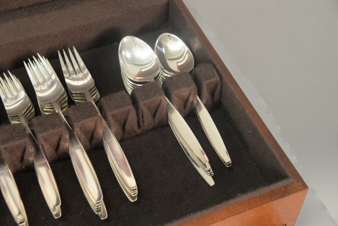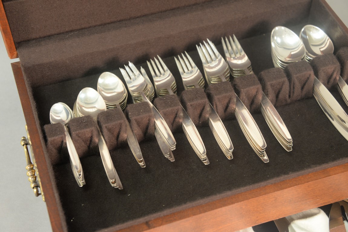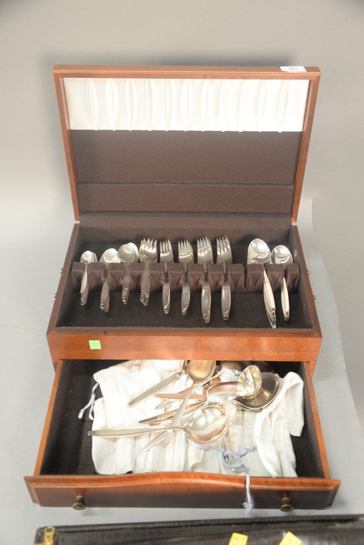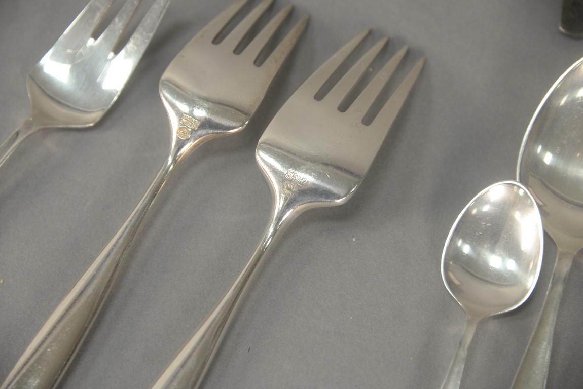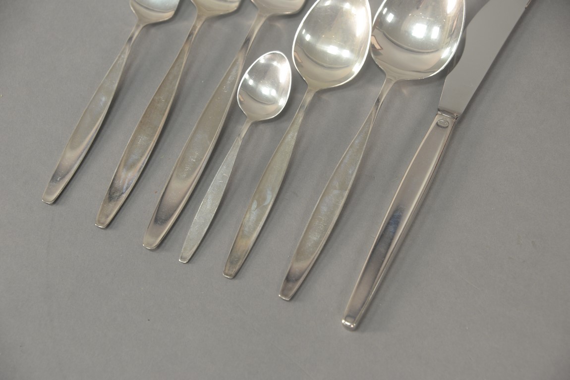 Lot 281: Georg Jensen sterling flatware set, serving for twelve, Cypress pattern Denmark, Tias Eckhoff b. 1926, 92 piece complete set to…
