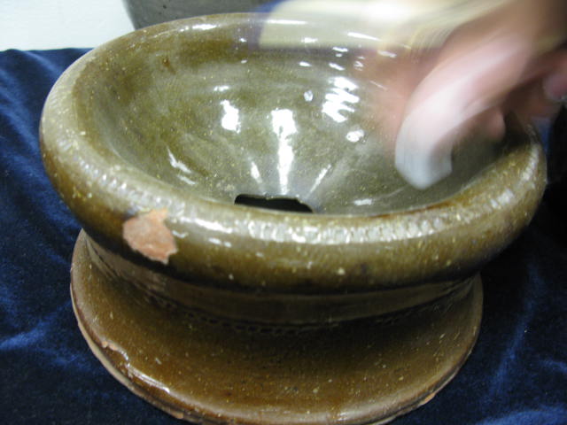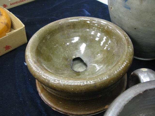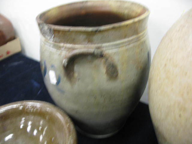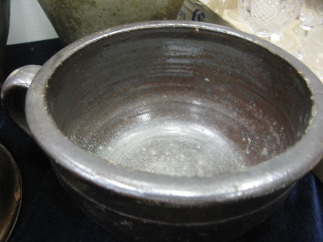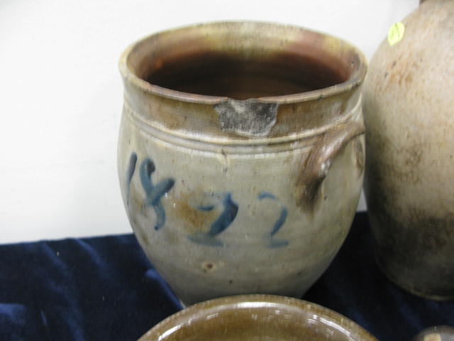 Group of Stoneware and Redware pieces to include a Stoneware crock, Stoneware jug, Redware spittoon and Redware handled bowl