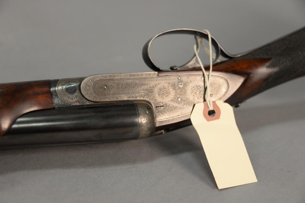 Lot 281: J. Purdey & Sons side by side 12 gauge shotgun, self opening side lock ejector, 30 nitro barrels, engraved J. Purdey and Sons Audle…
