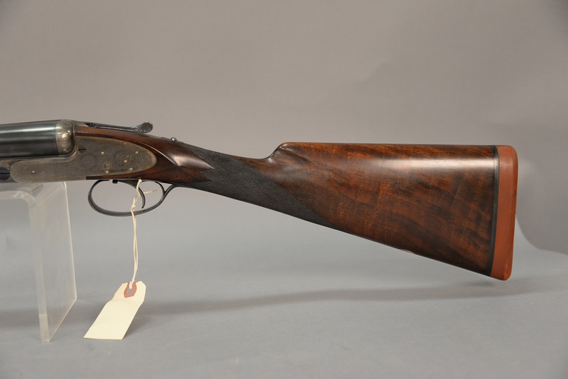 J. Purdey & Sons side by side 12 gauge shotgun, self opening side lock ejector, 30 nitro barrels, engraved J. Purdey and Sons Audley House South Audley Street London England, gold inlaid SAFE detail, Best bougquet and scroll engraving, 85% rose and scroll engraving, single Miller trigger, switchable left and right, beaver tail forearm, LOP 13 1/4 over factory recoil pad, automatic safety, edjectors in time, restocked in the 1960’s, choked mod and full, 1890’s vintage with nitro proofs, 15 1/4 stock, sn#15784.