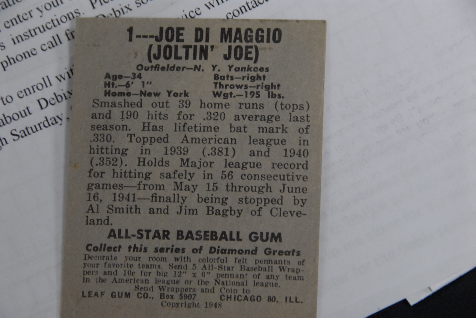 Joe DiMaggio Leaf Gum Company baseball card 1948