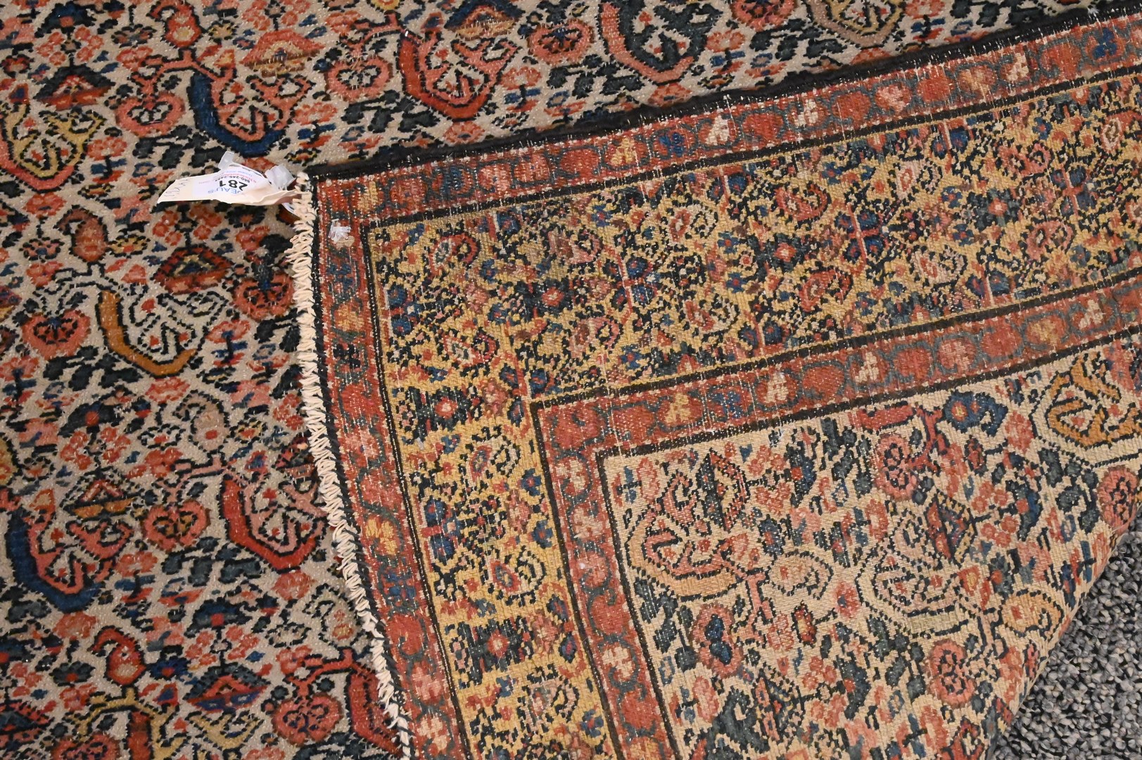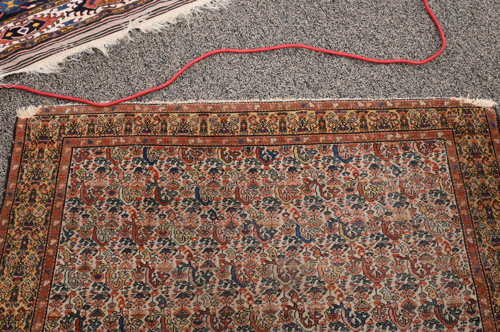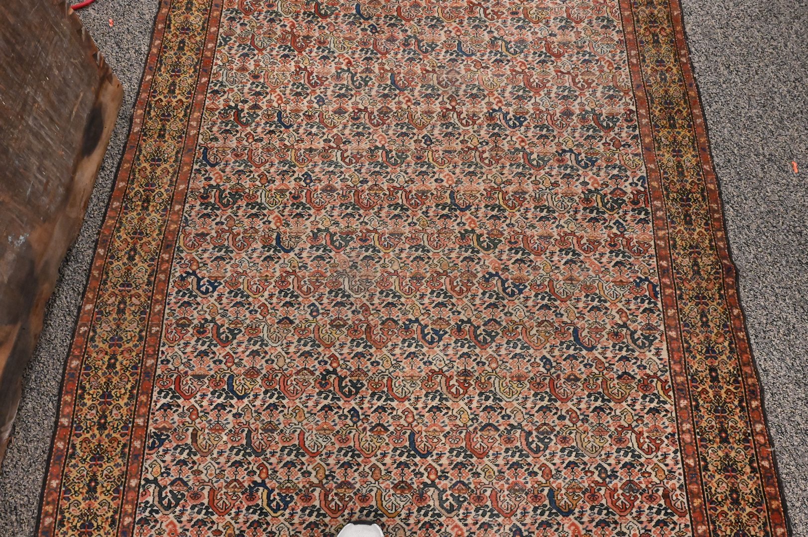 Oriental Throw Rug, having gold border, 4′ 4″ x 6′ 3″