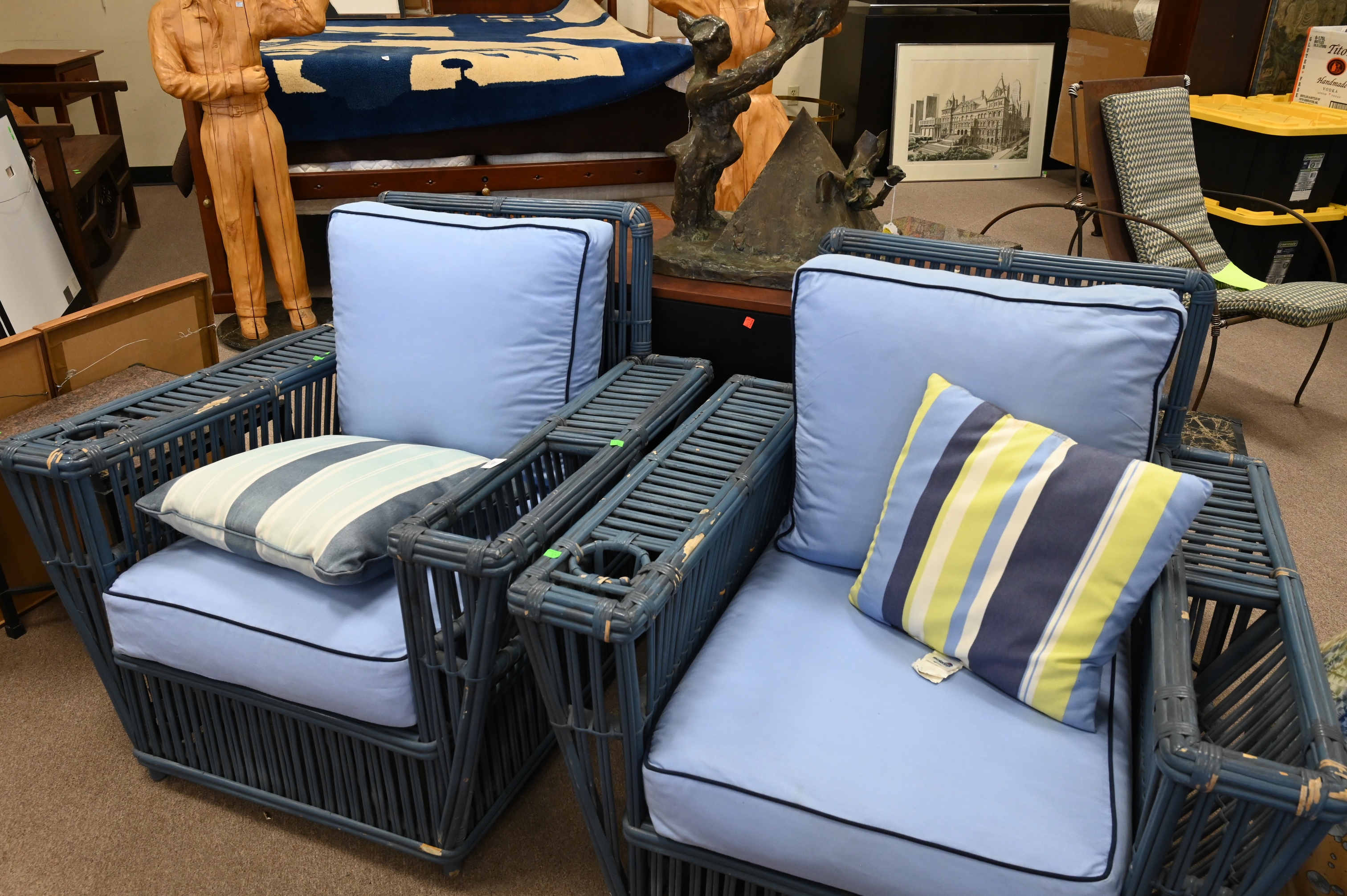 Lot 281: Pair of Rattan Bielecky Brothers “Nantucket” Outdoor Lounge Chairs