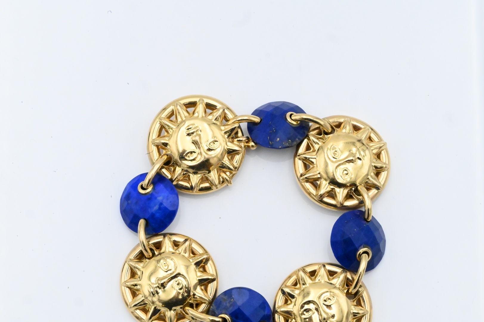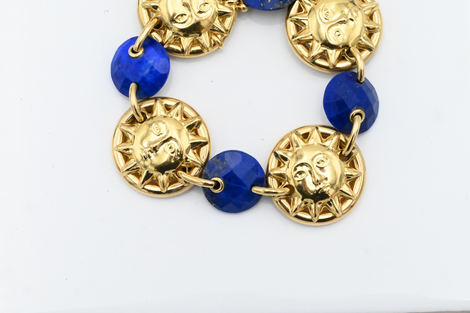 having four 18 Karat gold sun medallions along with four lapis faceted round stones