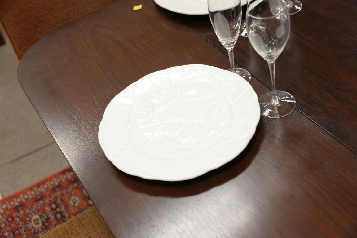 Lot 281: Set of sixteen Bordallo Pinheiro Majolica plates, large white glazed with molded leaf and flowers, marked on back Bordallo Pinheiro …