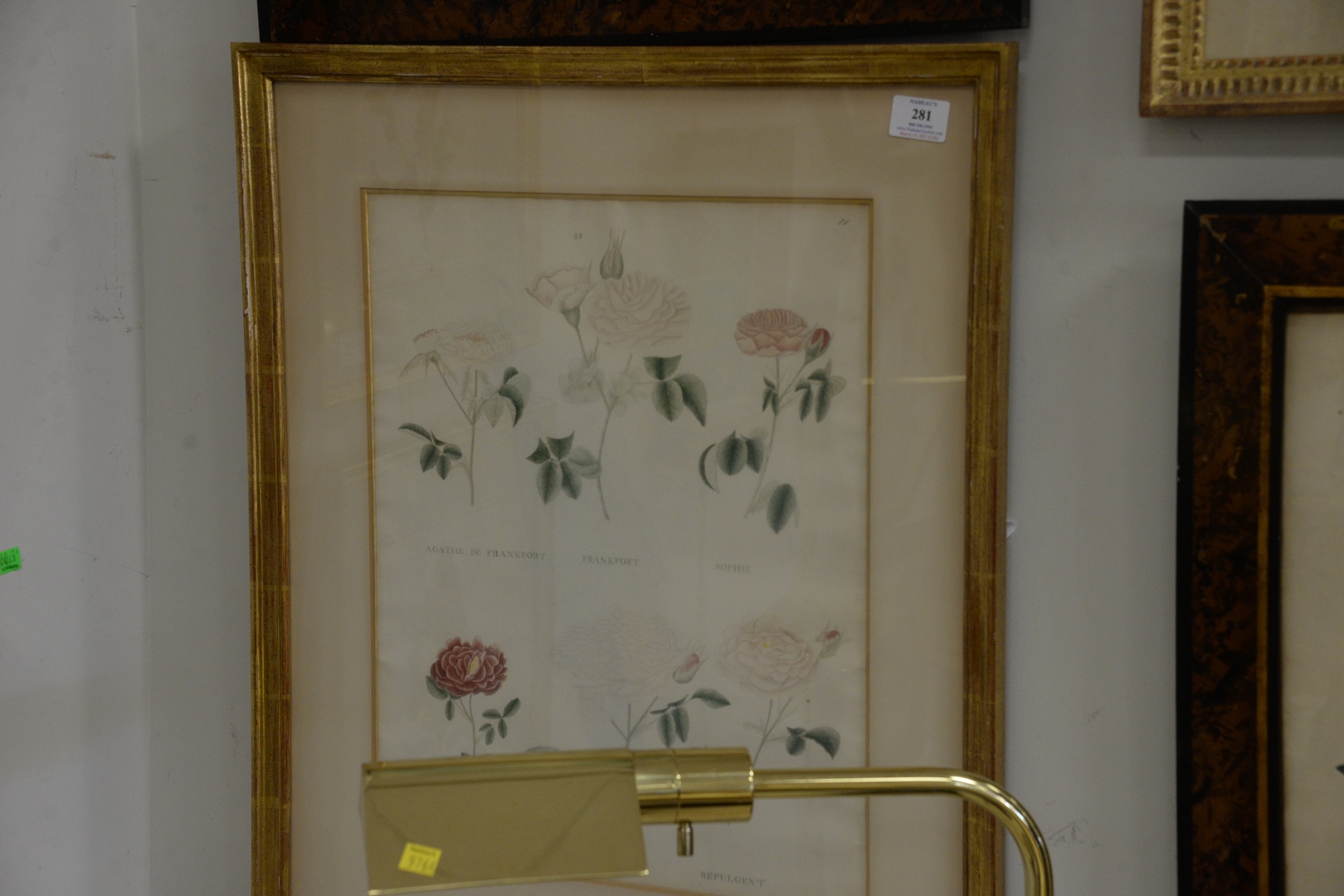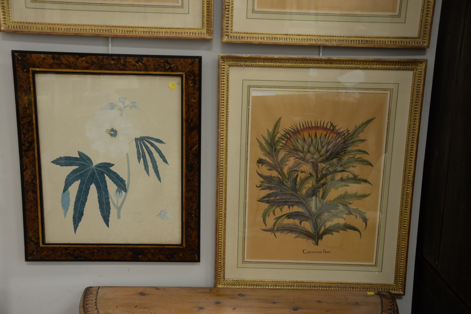 Lot 281: Seven Framed Botanical Engraving Lithographs, Cinera Cum Flore, Lilium Cruentum Polyanthos, Flos Solis Prolifer, two botanical print…