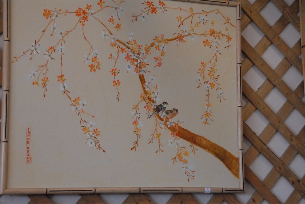 Seven piece lot of paintings and prints along with a box of frames and prints.