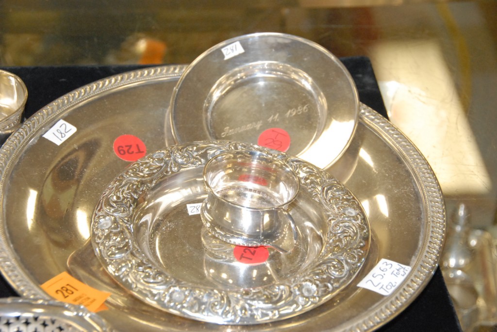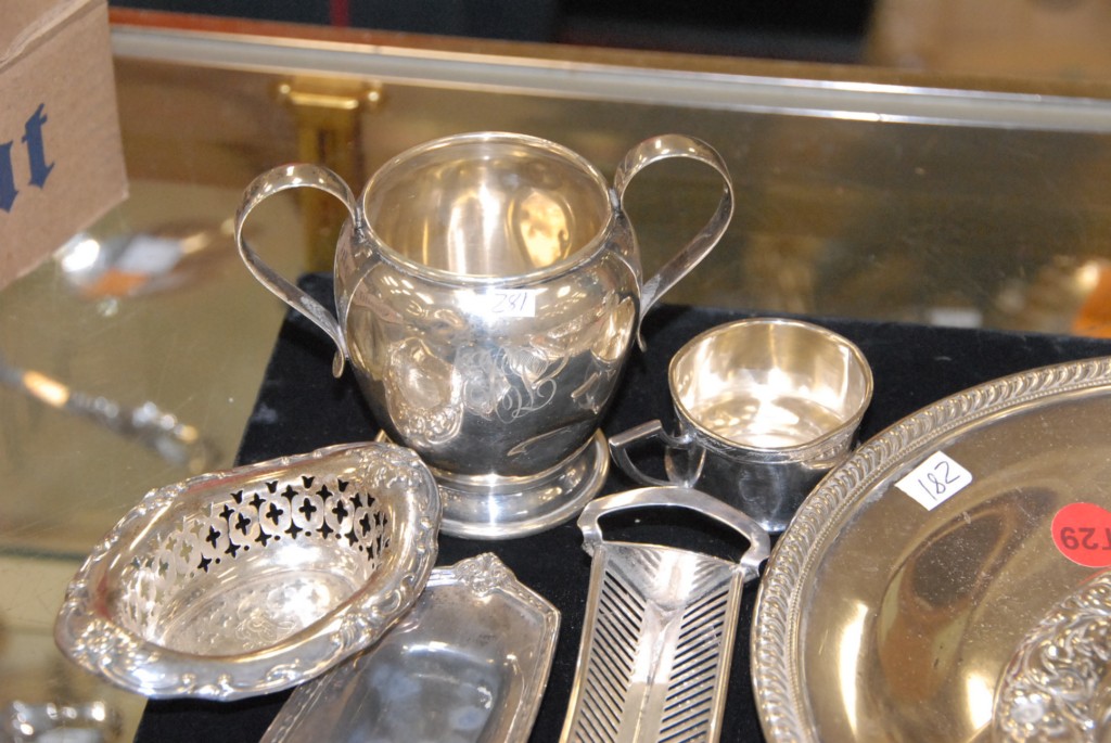 Sterling silver lot plates, small dishes, sugar bowls, small cups and misc.