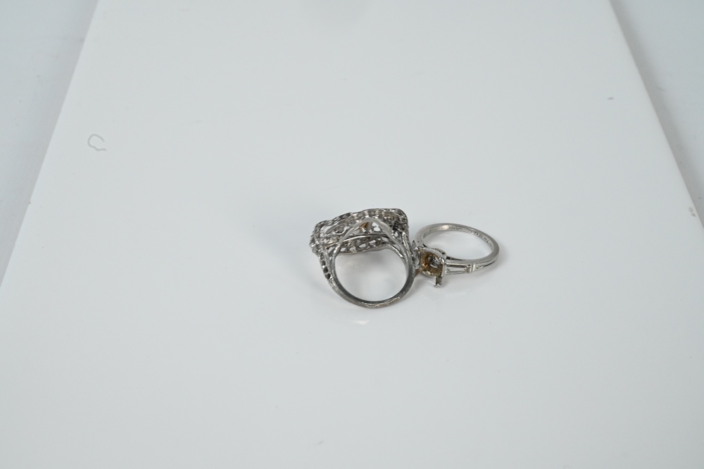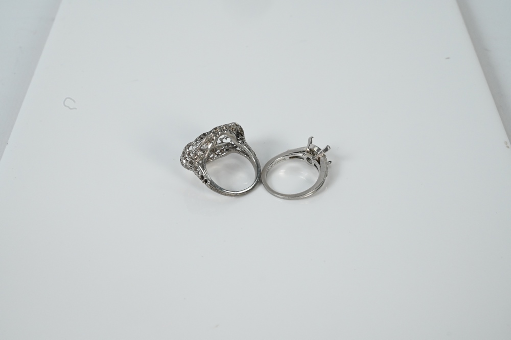 Two Platinum Ring Mounts, missing stones, 9.2 grams.