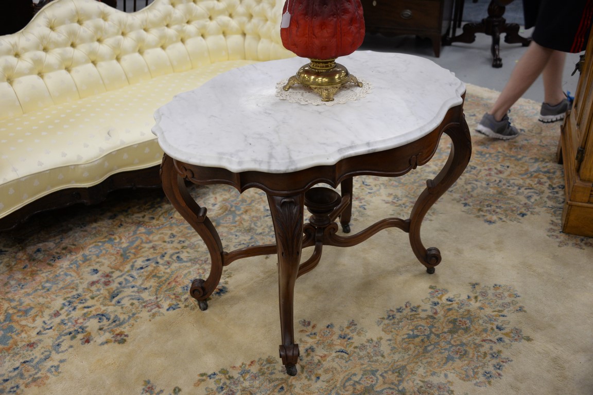 Victorian shaped marble top table. ht. 28 1/2 in. top: 30 x 40